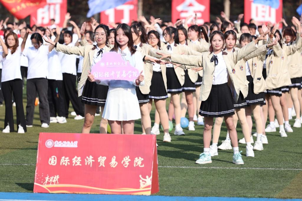 随后,党委副书记岳宏在致辞中指出, 体育承载着国家强盛、民族振兴的梦想;体育强则中国强,国运兴则体育兴。学校一直重视体育工作,纵深推进“四个融入、五育并举”,制定并实施“关于全面加强和改进新时代学校体育工作实施方案”,大力推广“一校多品”校园特色运动项目,体育教学、文体活动、全民健身呈现出勃勃生机。岳宏列举了吉财五年来在体育方面取得的诸多成就,充分展现了吉财青年的勇往直前的风貌和坚韧顽强的品质,以实际行动助力健康中国、体育强国建设,以团结拼搏书写新时代“吉财精神”。他希望同学们能够以饱满的热情、昂扬的斗志参与到各项活动当中,养成终身体育锻炼的习惯,成长为具有强健体魄、健全人格、社会责任、家国情怀的新时代大学生;希望老师们以更加饱满的姿态和健康的体魄,投身到教育教学的各项工作中,为祖国教育事业不懈奋斗。将体育运动与中国精神相结合,融入吉财文化,以实际行动弘扬光荣传统、赛续红色血脉,以优异的成绩为学校高质量发展献礼,为体育强国建设贡献青春力量。