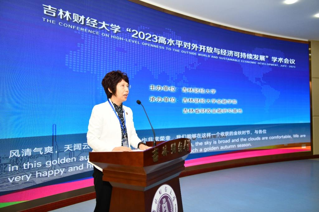 开幕式由校学术委员会主任委员、应用经济学学科带头人赵惠敏教授主持,副校长马秀颖在开幕式上致辞。马秀颖代表学校对莅临大会的各位专家学者表示欢迎,希望通过各位专家学者在不同领域的交流、分享,集中智慧集思广益推动我国经济可持续发展和吉林省全面振兴全方位振兴。
