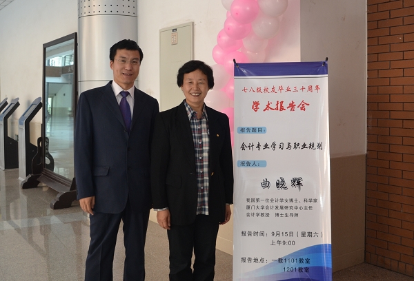本网讯 9月15日,在七八级校友毕业30年重回母校之际,kaiyun官网校友曲晓辉教授在第一教学楼1101教室举行了报告会。会计学院院长卢相君教授、会计学院分党委副书记徐克哲老师以及学生参加了报告会。