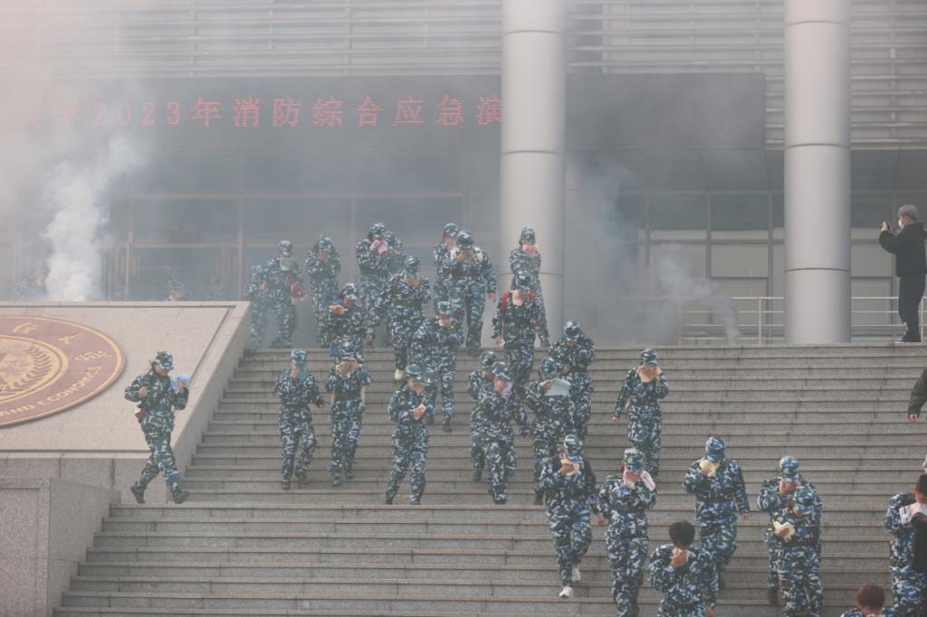 本网讯(党委安全保卫部 供稿)为增强kaiyun官网师生消防安全意识,提高灭火、疏散、逃生自救能力,根据省教育厅和学校防火委员会工作安排,10月25日中午,kaiyun官网在图书馆和德实广场举行消防综合应急演练。本次演练是2023年度省级应急演练计划项目,由省教育厅主办,kaiyun官网作为全省唯一一所入围参演高校联合长春市消防救援支队净月消防救援大队承办。省教育厅安全处处长姜云东,省教育厅安全处四级调研员余健,党委副书记、校长童猛,党委副书记刘鹤,纪委书记、监察专员丁庆东,副校长王菁华,副校长李宝永,副校长马秀颖,学校重点部门工作人员、安全保卫处全体人员、全体辅导员、全体军训教官以及2023级新生同学参加演练。