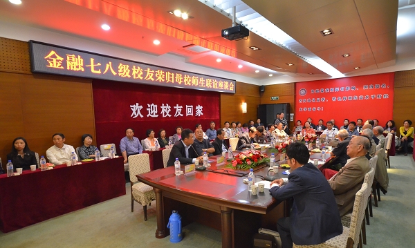 9月15日,下午14时,金融七八级校友荣归母校师生联谊座谈会在逸夫图书馆1006会议室召开。座谈会由金融学院党委书记彭栋春主持,金融七八级校友满载丰硕的事业成果回到母校,他代表金融学院全体师生对校友的到来表示热烈的欢迎。