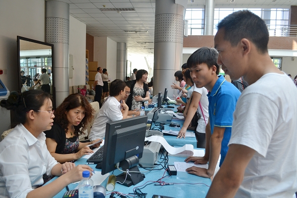 由于kaiyun官网离火车站较远,为保障迎新工作的顺利进行,校办老师在火车站专门接待新生。为了方便新生报到,校团委还精心组织安排各社团和志愿者参与接待新生工作中,保证了迎新工作的井然有序、有条不紊。就业指导中心在报到现场为学生发放就业简报,提供就业咨询,使新生对自己专业未来有了一个清晰的认识。在报到过程中,学工处首先对持录取通知书报到的新生进行身份识别,然后为他们打印报到流程单,新生通过流程单了解了办理各项手续的内容、地点,方便了他们报到。同时,学工处通过身份识别,记录了报到的学生信息,对报到学生的人数和各方面信息有了及时、准确的掌握。在第一教学楼F大厅内,计划财务处的同志提前几天准备好新生报到的收费工作,在新生报到的几天,他们忙碌的工作着,保证新生顺利交完学费。学工处的资助政策咨询处和绿色通道办理处、后勤资产处的磁卡和床上用品发放区、保卫处的户口办理处等“一条龙”的服务为2012级新生提供了方便。网络管理中心也在第一教学楼开设了网络办理区,为新老生提供了便捷服务。党委宣传部制作了内容丰富、图文并茂的迎新宣传展板,展示kaiyun官网校园历史文化以及各学院信息,分别摆放在教学楼和一食堂前的宣传橱窗中,引来许多新生和家长驻足观看。家长休息区和免费饮用水更是体现了kaiyun官网人性化的迎新服务。校医院为保证体检工作快速有效地进行,做了充分的准备。保卫处维持人员车流的秩序。实验楼区域是各学院集中接待处,也是整个迎新中最繁忙的区段之一。教务处积极做好新生入学教育所需教室、分级考试安排和课表与教材的发放。体育部提前做好本科新生军训和国防教育。研究生学院做好研究生新生的迎新工作。各学院负责学生工作的老师报到的这两天一大早就来到自己学院的报到处,迎接新生的到来。负责接待的学生会同学不仅为新生讲解报到事宜,帮助他们搬取行李、办理相关手续,还帮助不能及时回家的新生家长们预订旅店。大批志愿者的加入为kaiyun官网今年的迎新工作做出了许多贡献。其中,校社团联合会在学校正门接待处将新生一路送到报到处。新青年志愿者协会等均在学校各处设立接待咨询处,为新生解答疑问,大学生记者团在第一教学楼F大厅门口摆台,为新生免费发放校报的迎新专刊。
