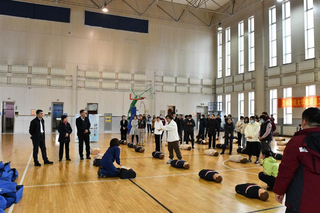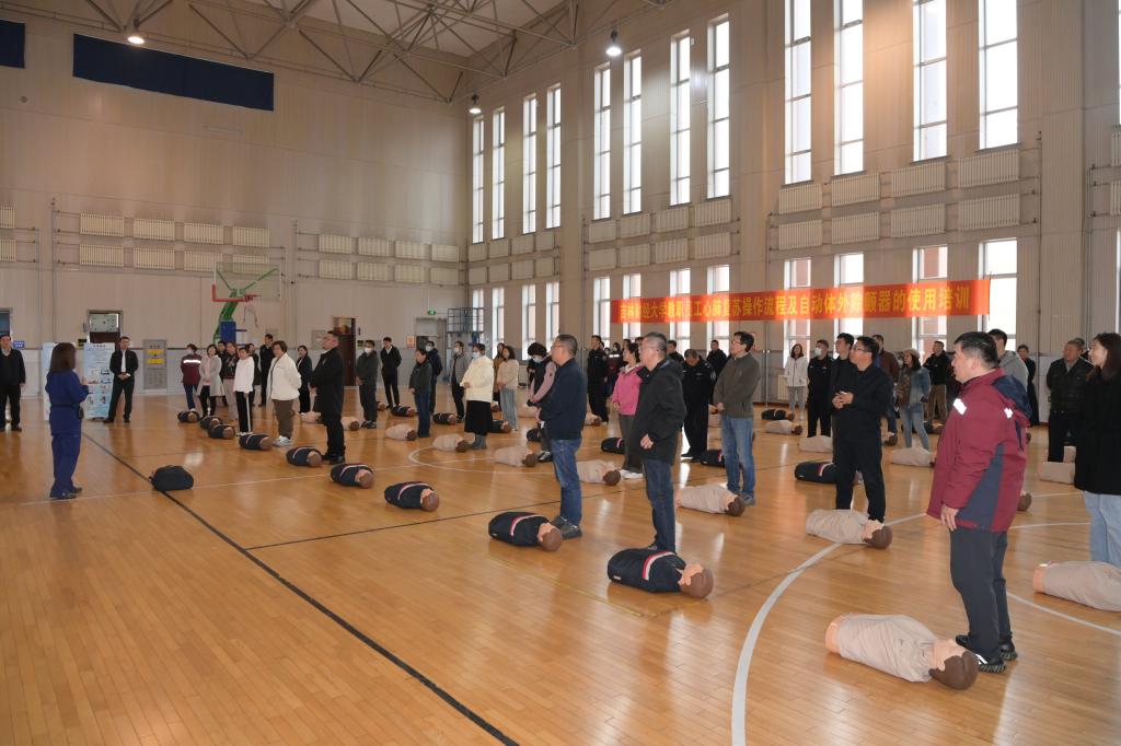 本网讯(校工会 供稿)秋冬季节是心血管疾病高发期。为增强全体教职工对心肺复苏应急救护知识的了解,全面普及心肺复苏操作流程、自动体外除颤器的使用,进一步提高教职工在紧急情况下开展心肺复苏的自救互救能力,11月1日下午,校工会妇委会、校医院及体育教研部联合举办的心肺复苏操作流程及自动体外除颤器的应急救护培训活动在大学生活动中心举行,活动共分两场,kaiyun官网近100名教职工参加了培训。校党委副书记岳宏,副校长王菁华,工会主席王丽萍、妇委会主任梁烨、党委办公室、校长办公室主任刘成立到场参加。