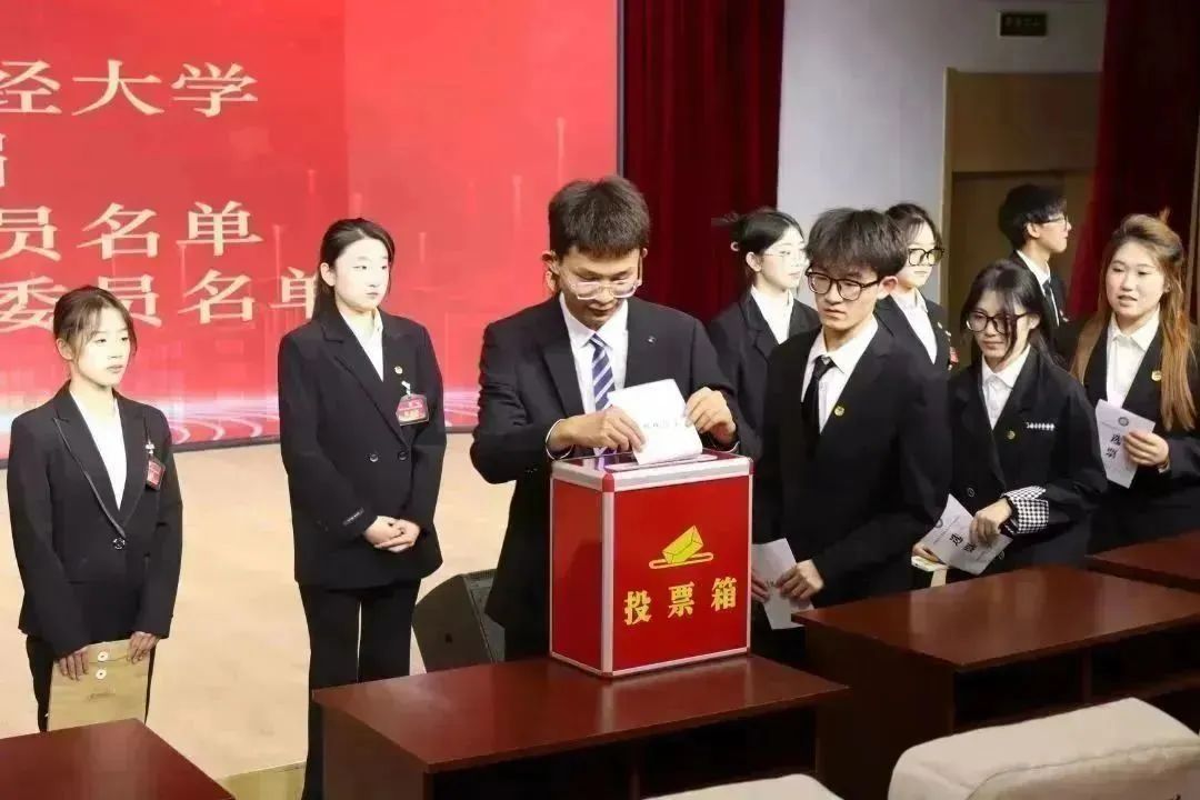 在第二次全体会议上,大会根据《中华全国学生联合会章程》《kaiyun体育网页登录入口第十九次学生代表大会选举办法》等相关规定,以不记名投票方式,差额选举国际交流学院杨昊炎、会计学院衣简彤、新闻与传播学院卞文男、会计学院朱秀晨、经济学院李思琨等5名同学为第四十五届学生会主席团成员,金融学院崔奕聪等19名同学为第四十五届学生代表大会常任委员会代表。