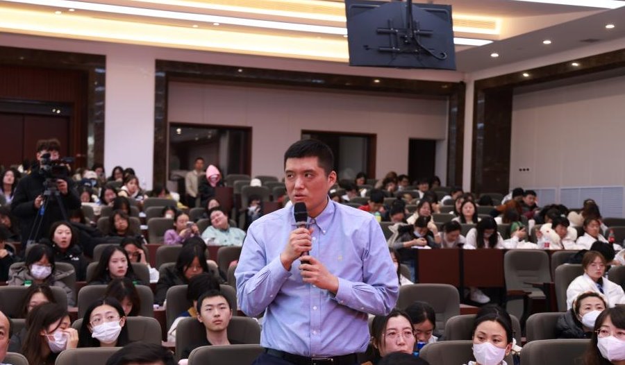 宁允展以《做一名立足岗位追求技艺,创新路上不停歇的中国高铁工匠》为题,与师生们分享了参加工作30多年以来的成长经历。他坚持勤奋学习,刻苦钻研,努力破解生产中的技术难题,在平凡的岗位上做出了不平凡的业绩,成为国内第一位从事高铁转向架“定位臂”研磨的工人,也是这道工序最高技能水平的代表,被同行称为“鼻祖”。现场掌声不断,师生们为大国工匠们的精神所感染。