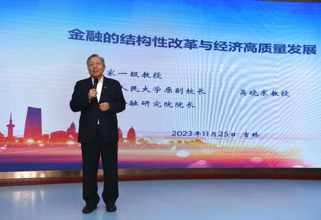 会议第一阶段的主旨报告由祝国平主持,中国人民大学原副校长、国家金融研究院院长吴晓求教授首先作“金融的结构性改革与经济高质量发展”的主题报告。他围绕深入贯彻落实中央金融工作会议精神,加快建设“金融强国”,分析了金融结构性改革对实现经济高质量发展的重要意义。他强调了资本市场改革和人民币国际化是金融结构性改革的重要内容,并从理论研究和实践维度阐释金融科技创新对推动金融结构性改革的重要驱动作用。