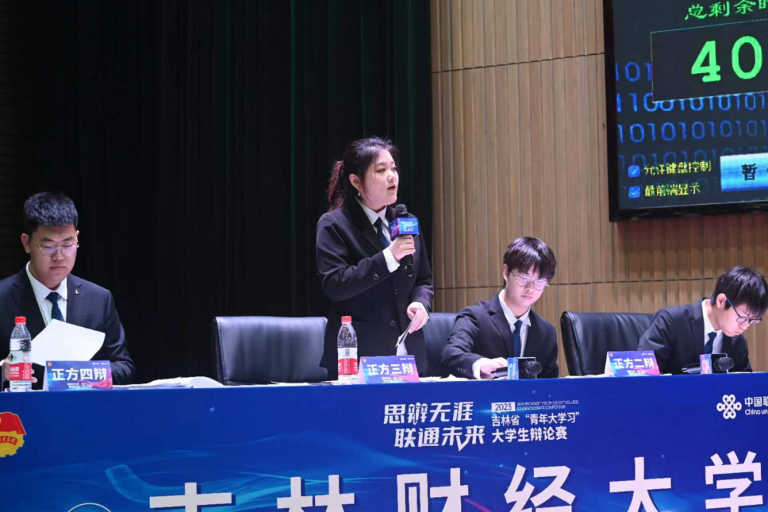 此次参赛的代表队由法学院刘爱坤、舒中盛、王浩霁,国际经济贸易学院庞靖谊、王雯静、赵俊杰,会计学院王宇辰,公共管理学院朱星宇,国际交流学院张艺馨等9名同学组成。备赛过程中,队员们翻阅大量文献,深入研究相关政策,通过多方位、多角度的调研,为辩论提供了坚实的理论基础。队员们的艰辛付出在比赛中得到了充分的展现,赢得了在场观众的阵阵喝彩,充分展示了财大学子昂扬向上、勇于创新的精神风貌,也体现了扎根吉林、服务家乡的责任担当。为校园创造了善思辩、好学习的氛围,为广大青年学子坚定理想信念、树立远大志向提供了强有力的价值引导。(审核人 孙之光)