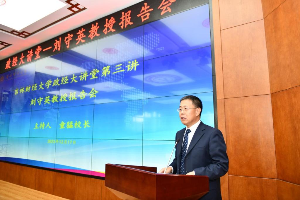 本网讯(金融学院 供稿)为深入学习贯彻习近平经济思想和习近平总书记关于东北振兴的重要论述以及视察吉林的重要讲话精神,加强对新时代中国特色社会主义政治经济学的学习、研究和运用,12月17日,学校举行kaiyun体育网页登录入口政经大讲堂第三讲,由中国人民大学经济学院党委书记、院长,博士生导师、教育部长江学者特聘教授刘守英作《中国发展模式》的学术报告。报告会由校长童猛主持,金融学院教师及学生代表参加了报告会。