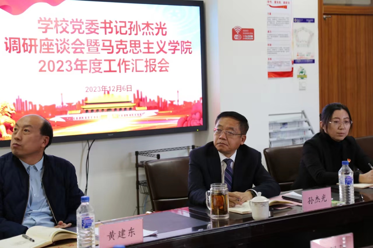 本网讯(马克思主义学院 供稿)为进一步推进马克思主义学院建设标准各项措施落实落地,学校党委书记孙杰光来到马克思主义学院开展调研,调研紧紧围绕“查不足 补短板 扬优势 建新功”主题,学院全体教师参加调研,调研由学院党总支书记黄建东主持。