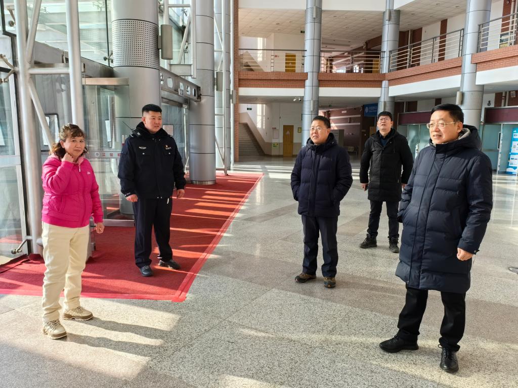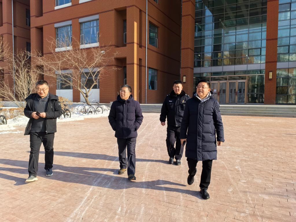 本网讯(党委宣传部 供稿)2月9日,是中华民族的传统节日除夕,也是举国欢庆、合家团圆的日子。上午,学校党委书记孙杰光,党委副书记、校长童猛带队对校园内重点楼宇进行了安全检查,并走访慰问了节日期间坚守工作岗位的一线工作人员。党委常委、党委宣传部部长李栋栋,后勤保障处处长李印俊,党委办公室、校长办公室副主任张冬春,安全保卫处安全消防科王元帅等一同参加了安全检查和走访慰问。