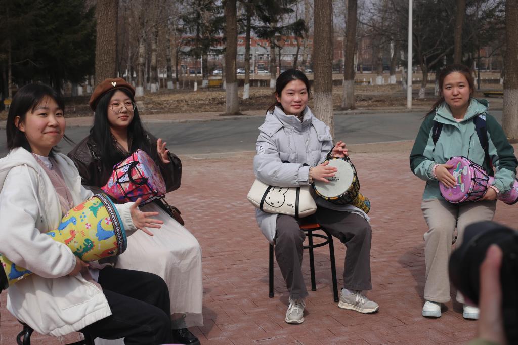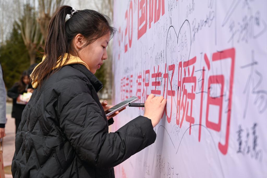 活动过程中,同学们纷纷在主题宣传板上书写幸福时刻,和现场玩偶进行积极互动,与“3·20”国际幸福日主题元素合影,按照活动规则领取了学工处心理中心为大家准备的甜蜜棒棒糖,并积极参加鼓圈体验活动。活动现场精彩纷呈、趣味盎然、气氛热烈,同学们热情高涨,沉浸式放松了心情,大大提升了幸福感。