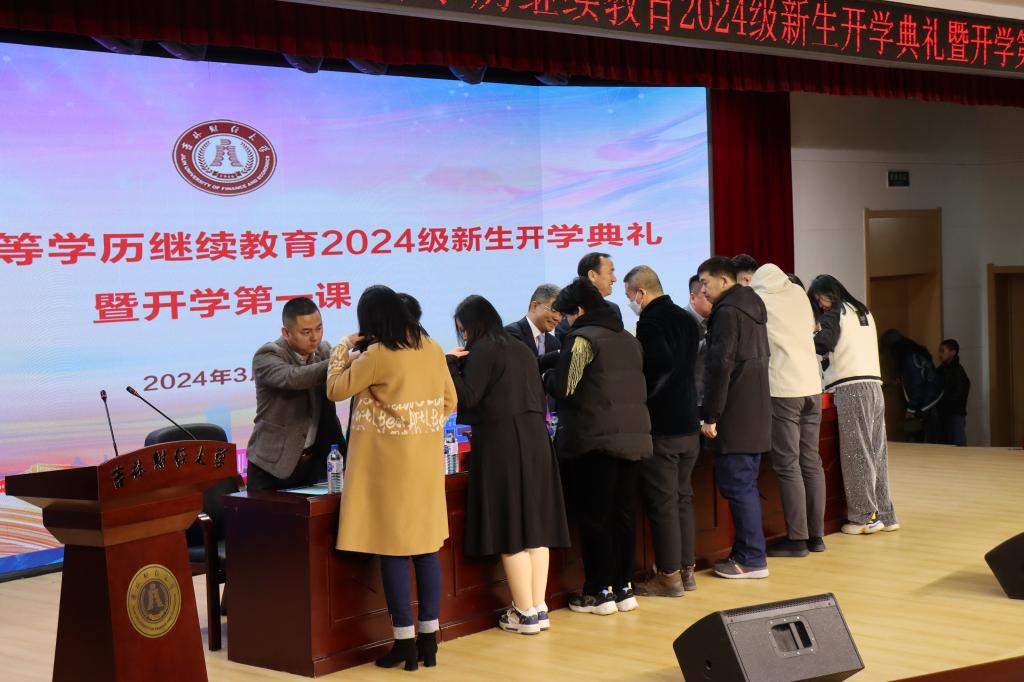 徐克哲在致辞中强调,四十年高等学历继续教育办学征程,吉财继教挺立时代潮头,始终坚守“为党和国家、为区域发展培育财经英才”的初心和使命,把教育教学质量作为继续教育办学的生命线;进入新时代,吉财继教坚持“服务全民终身学习需要、促进经济社会发展和人的全面发展”的主旋律,开启学校继续教育改革发展新征程。他寄语新同学,一要将“明德崇实”的校训精神内化于心,将其融入财经报国之行。二要夯实根基,厚积薄发,向着自己的目标不断充实自我。三要虚怀若谷,海纳百川,构建起更加宽宏大量的人生观念。希望新同学们坚守“尚学致用、择善鼎新”的学校精神,学有所成、不负韶华。