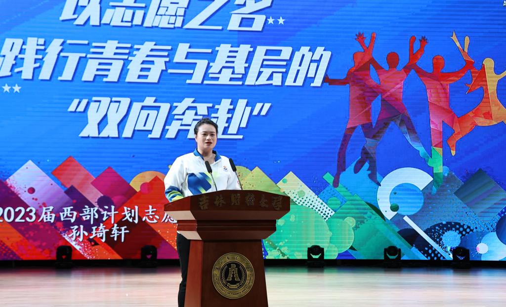 宣讲会上,耿凯天、胡天伟、吴美玲、何俊岩四位嘉宾结合自身经历,分享了与吉林发展同脉搏、同奋进、同收获的励志故事,激励广大青年学子在吉林创业奋斗、追逐梦想、赢得未来。杨如军从“乐业吉林、筑梦吉林、创响吉林、筑巢吉林、活力吉林、展翅吉林、起航吉林、才聚吉林、魅力吉林、就在吉林”等十个方面解读了我省高校毕业生就业创业政策,为即将毕业、开启人生新征程的高校毕业生提振信心、提供指导。西部计划2023届志愿者孙琦轩作吉林省大学生志愿服务西部计划“卫国戍边”项目推介,引导广大财经学子投身西部计划,把个人理想追求融入强国建设和民族复兴伟业进程中,将青春之花绽放在祖国和人民最需要的地方。