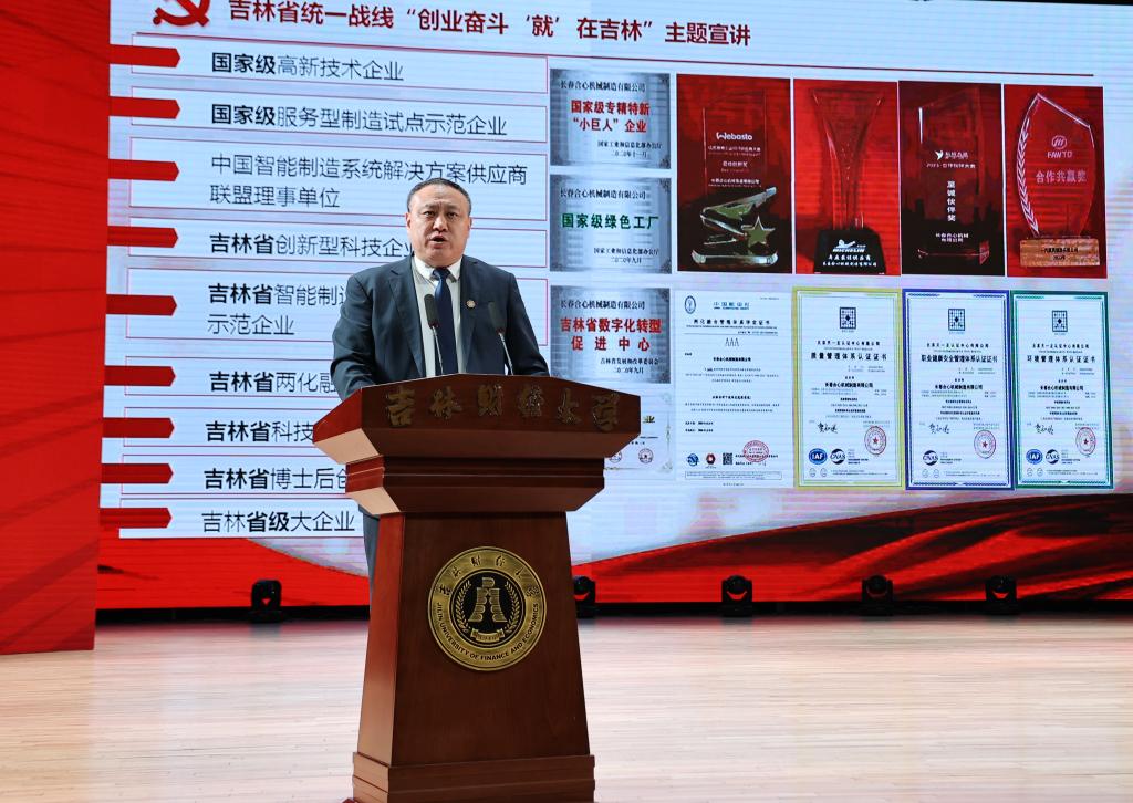 郑伟峰代表主办单位致辞,他指出,今天的报告会是我省统一战线领域,深入贯彻习近平总书记关于人才工作重要论述和在新时代推动东北全面振兴座谈会上的重要讲话精神,落实省委大学生“留吉就业”工程的重要举措,也是以奋斗者的足迹引领和感染更多青年学子激昂青春、点燃梦想、接续奋斗的有效载体。他分享了对“创业奋斗 ‘就’在吉林”的体会和认识。号召青年学子同读懂“吉林”这本书,选择吉林、创业吉林、扎根吉林。