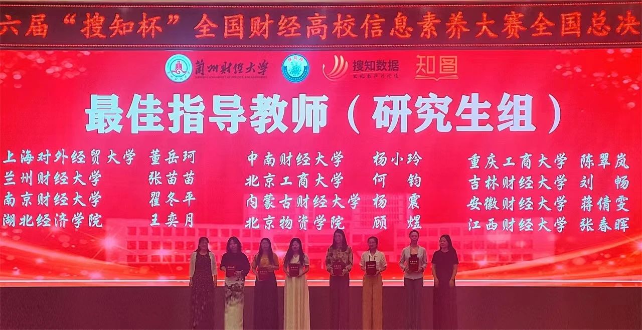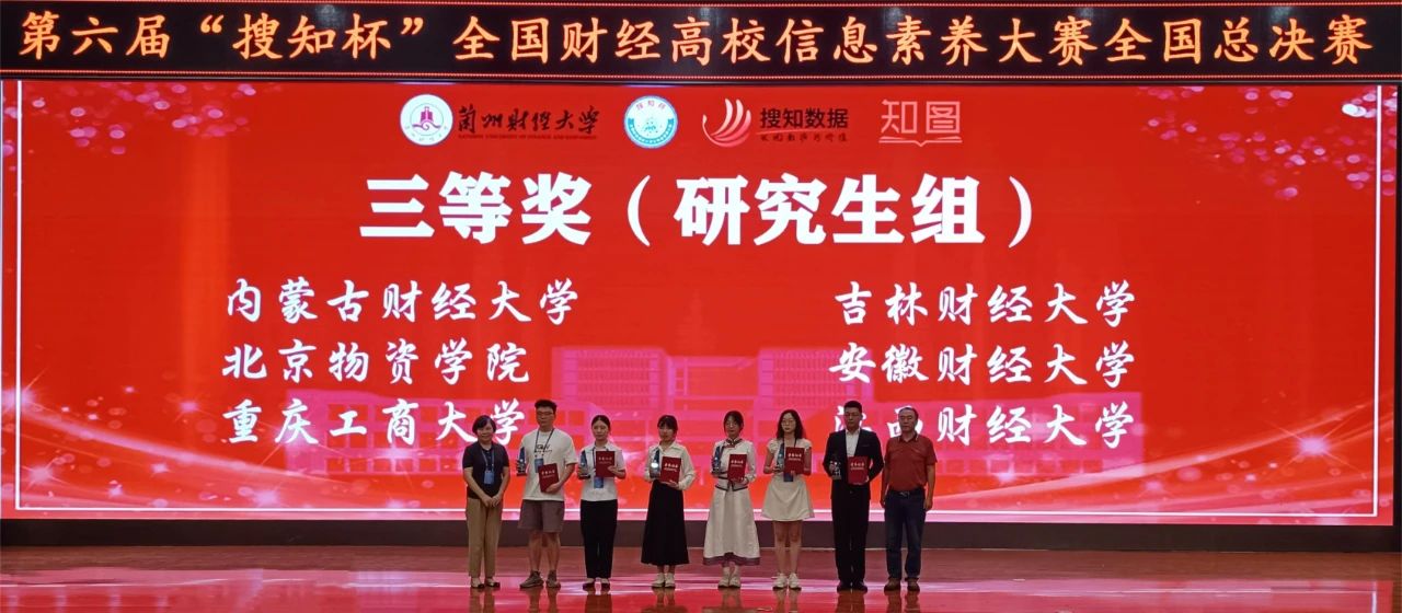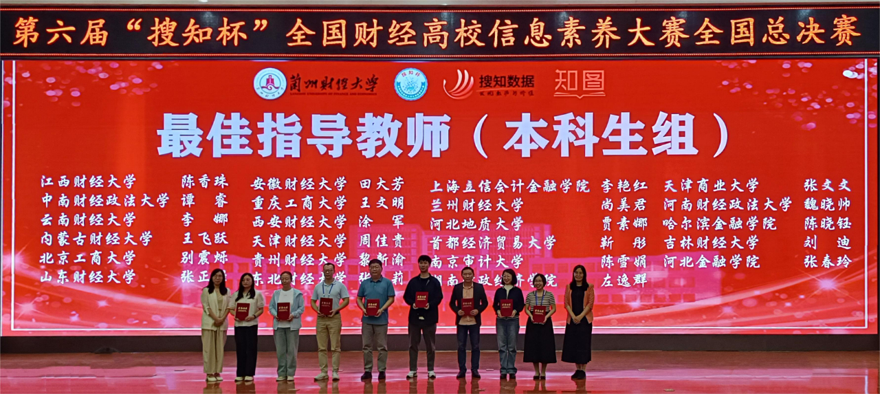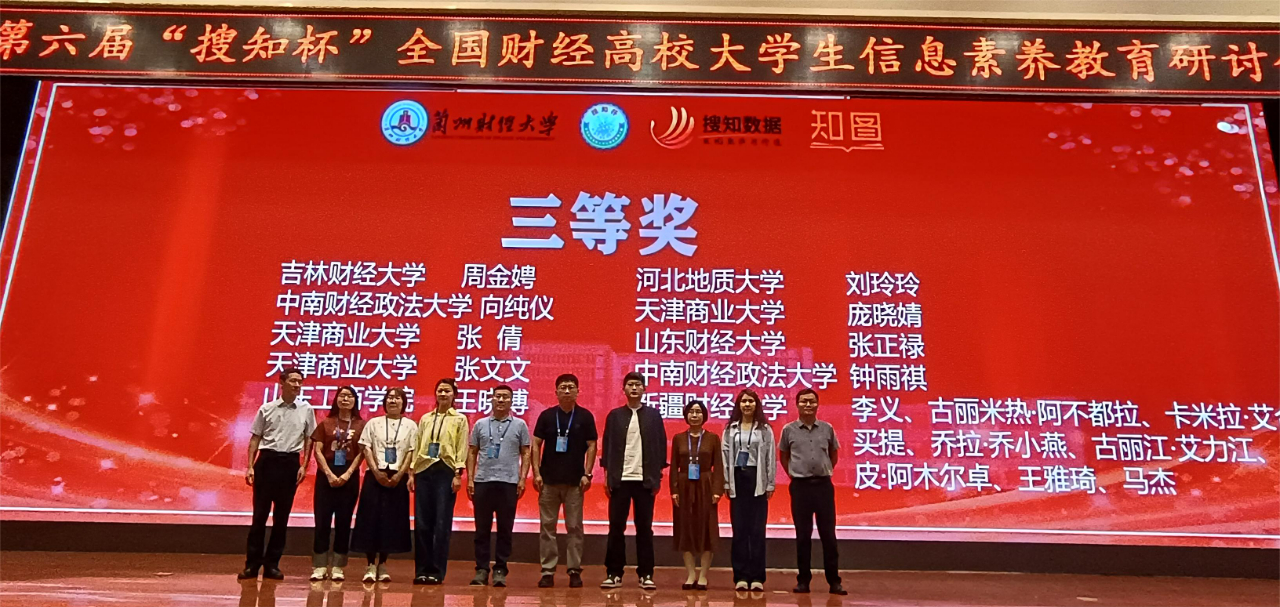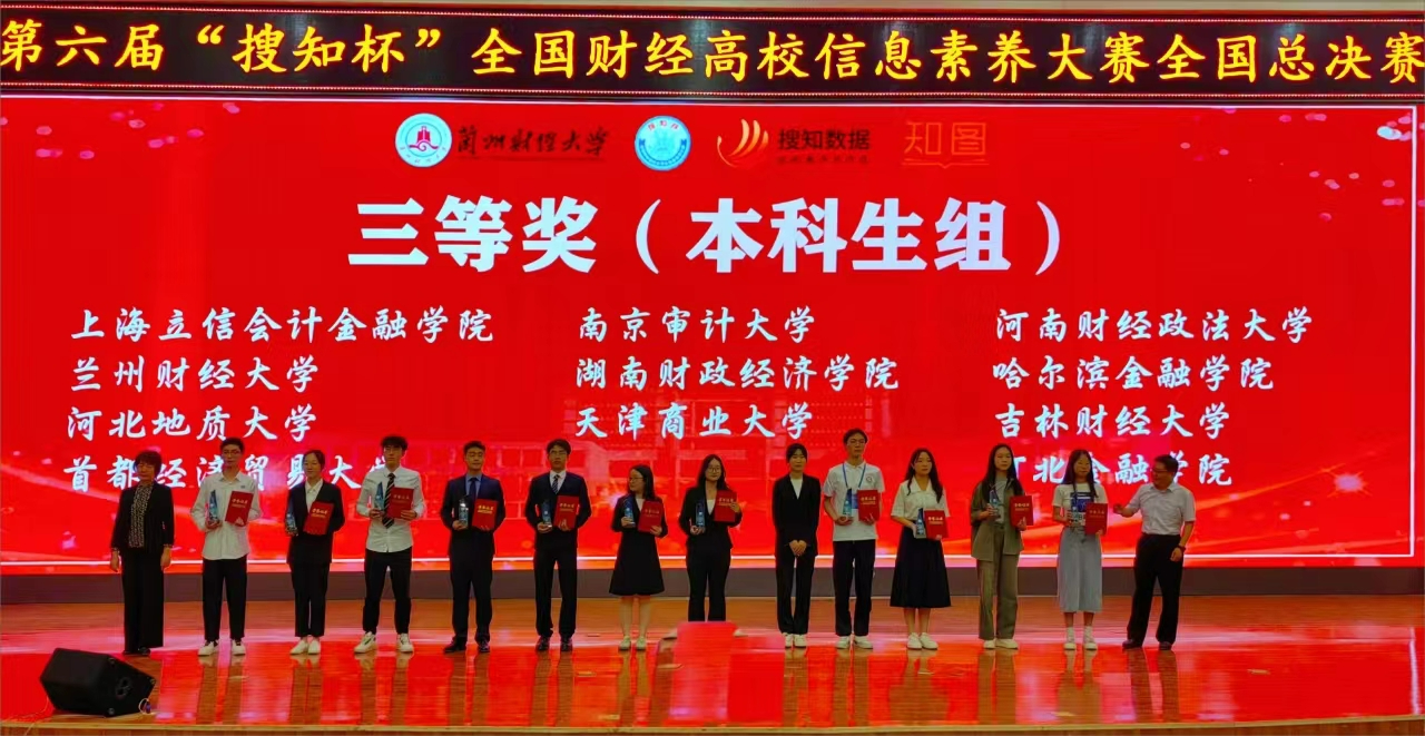 本网讯(图书馆 供稿)5月25日至26日,第六届“搜知杯”全国财经高校大学生信息素养大赛全国总决赛在兰州财经大学举办,kaiyun官网由国际经济贸易学院卢亮、会计学院莫钧豪、国际交流学院胡雨轩组成的本科生队,管理科学与信息工程学院苗航语、雷玉勋、刘东昕组成的研究生队,分别荣获本科生组三等奖、研究生组三等奖,刘迪、刘畅荣获最佳指导教师奖,学校图书馆荣获组织奖;在教师组微课大赛中,管理科学与信息工程学院周金聘荣获三等奖。