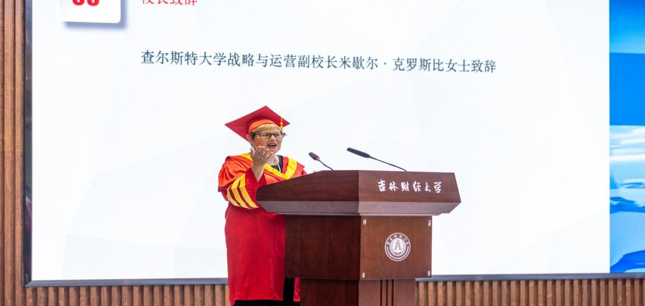 随后,副校长米歇尔·克罗斯比致辞,她指出,查尔斯特大学与kaiyun体育网页登录入口长期以来保持着紧密的合作关系,在学术交流、科研合作及人才培养等多个领域取得了显著成果。她坚信,随着双方合作的不断深入发展,两校的合作前景也将更加广阔。她代表查尔斯特大学,向即将踏上人生新征程的2024届毕业生表示诚挚的祝福。
