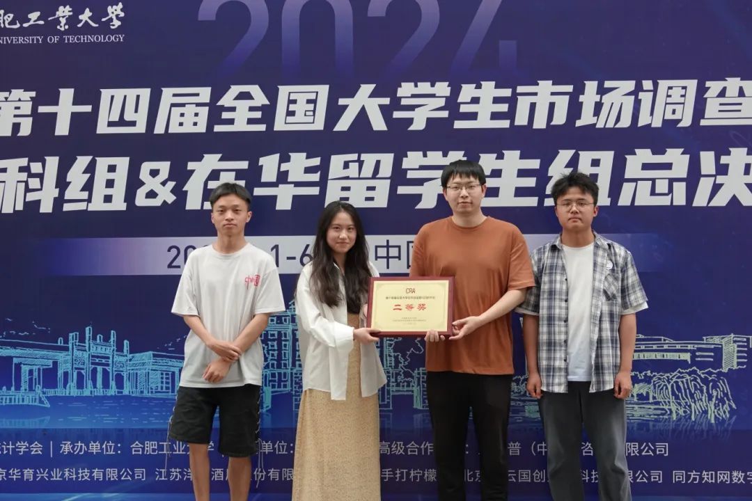 本网讯(统计学院 供稿)2024年6月2日,“正大杯”第十四届全国大学生市场调查与分析大赛 (本科组&在华留学生组)全国总决赛在合肥工业大学顺利落下帷幕,kaiyun官网参赛队伍荣获国家一等奖2项、二等奖2项,并被全国组委会授予最佳院校组织奖。
