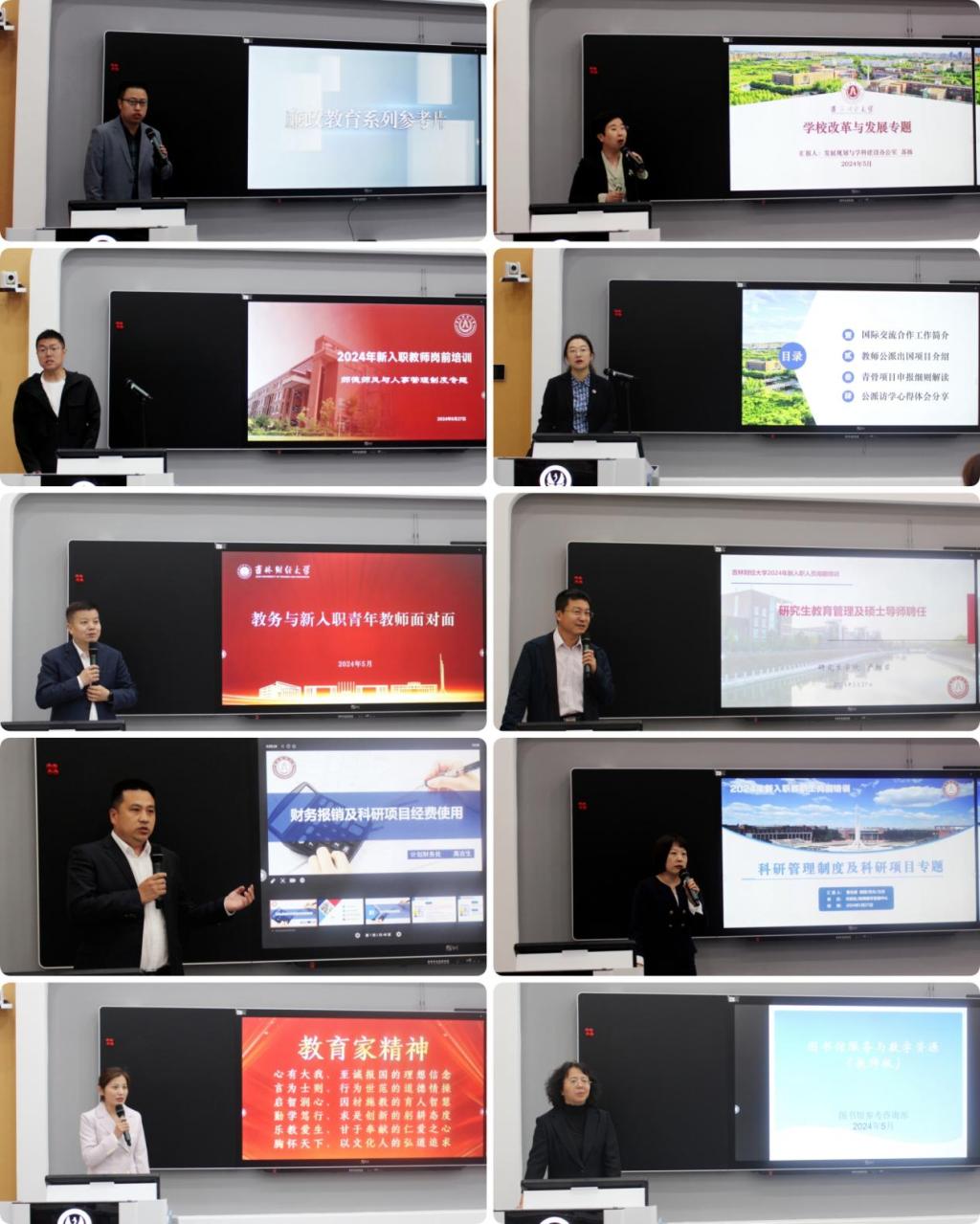 本次培训工作中,学校相关职能部门通力合作,精心准备。纪委、监察专员办公室,发展规划与学科建设办公室、人事处(党委教师工作部)、国际合作与交流处、教务处、研究生学院、计划财务处、科研处以及图书馆等多个部门,分别从师德师风、学校改革与发展、国际交流、教学管理、研究生教育、财务管理、科研管理以及图书馆服务等多个角度,为新入职教职工提供了全面而深入的岗前教育。