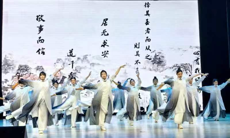 活动在浓浓的回忆和暖暖的感动中来到了第二篇章。两位老师和三位同学以《红色家书》朗读和分享的形式带领现场的师生们共同感受着革命先辈们的心路历程和家国情怀;舞蹈《简书颂贤》创作灵感来自于“书香吉财”建设,以中国由古至今崇尚阅读的传统触发着每个人的思考,引领青年学子始终铭记“阅读是铭刻在我们这个民族基因里的密码,也是中华民族历经艰难险阻而生生不息的力量所在。”