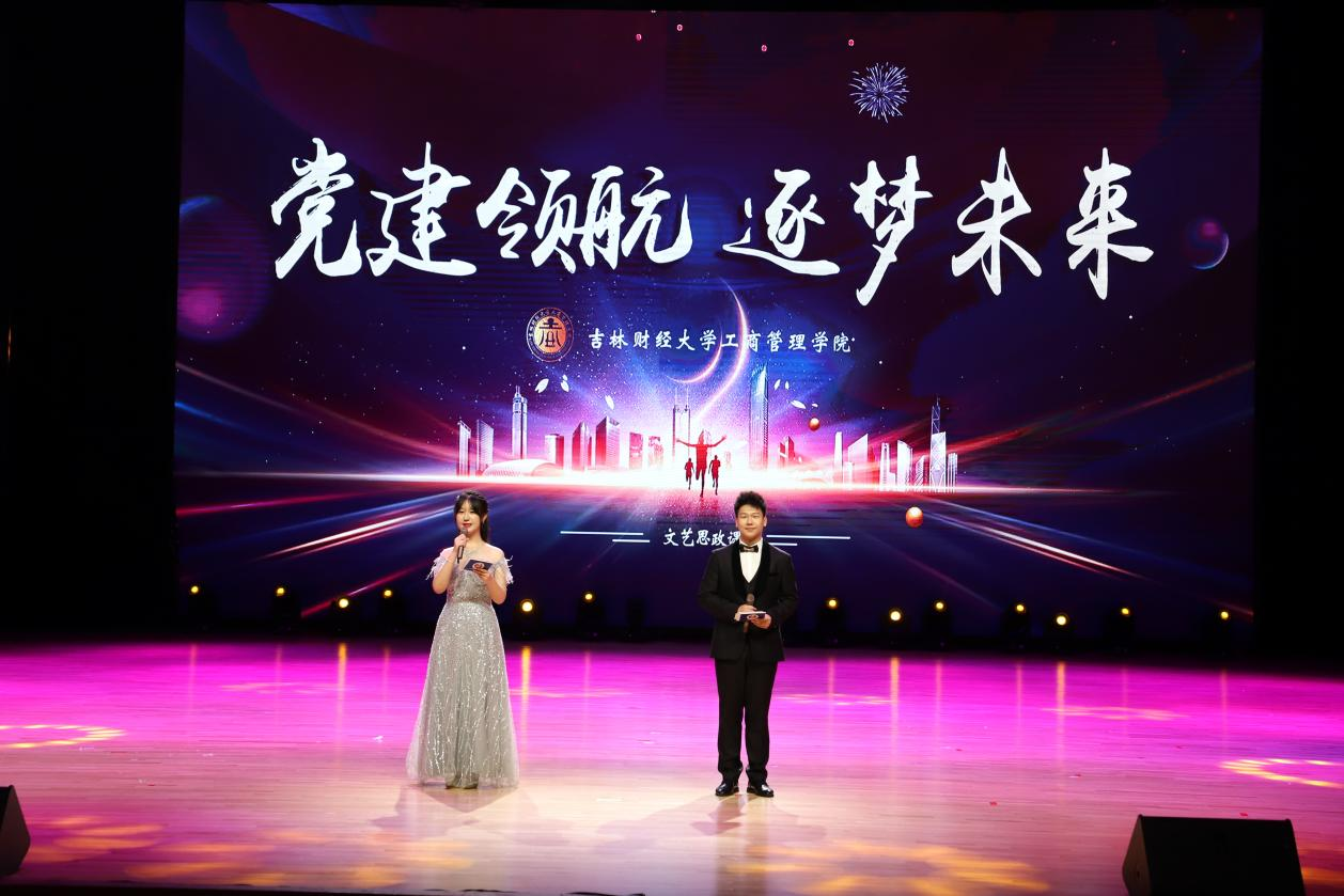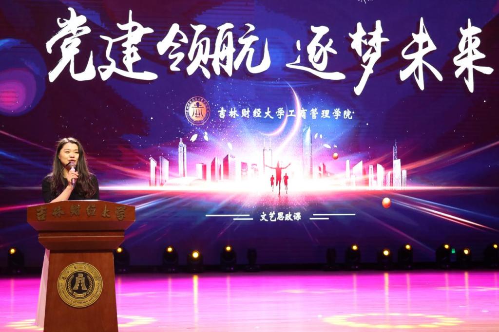 军乐团《走向复兴》的铿锵旋律拉开了文艺思政课第一篇章的序幕。舞蹈《天下吉商》恢弘大气,彰显了吉商精神的代代传承,也向同学们发出了“留吉就业、建设吉林”的青春号召;师生诗朗诵《中国梦 中国红》在时光隧道中追忆先烈、致敬历史、憧憬未来,以吉财人特有的方式送上了对党的生日的殷殷祝福;歌曲《让我们一起远航》唱出了青春的朝气和跃动,更唱出了青年人的理想和坚定。