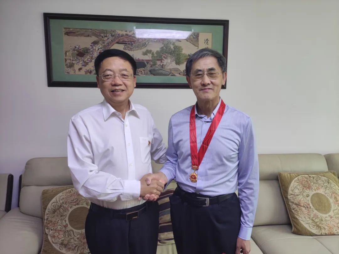 自2021年开始,党中央决定向党龄达到50年、一贯表现良好的党员颁发“光荣在党50年”纪念章。颁发过程中,孙杰光、童猛、岳宏感谢老党员为党和国家、为学校事业发展所做出的贡献,并向他们致以亲切的问候和崇高的敬意;在仔细询问了5名老党员近期的身体状况和生活情况后,叮嘱他们保重身体,继续发挥余热,一如既往地关心和支持学校发展。张喜山、车延杰、王庆国、黄顺子、时雨田5名老党员表示,获得这一崇高荣誉,是对党员同志坚守信仰、矢志奋斗的最大肯定,今后将永葆共产党员的初心和使命,为党和学校事业贡献力量。