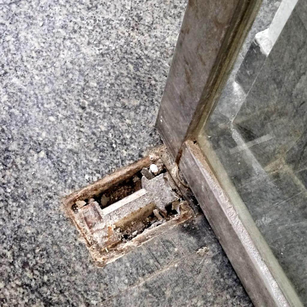 更换前,一二食堂的玻璃门,存在不同程度的损坏,年久老化,特别是食堂后门多病缠身,地轴生锈腐蚀、把手变形、关不严门导致漏风、失温等问题。