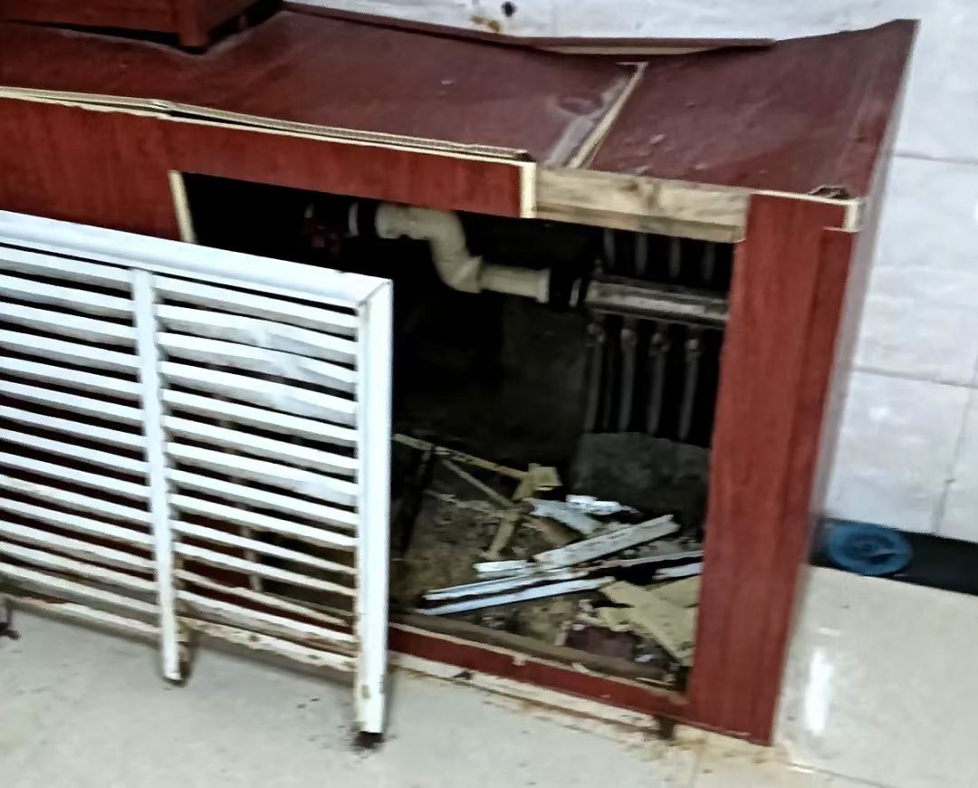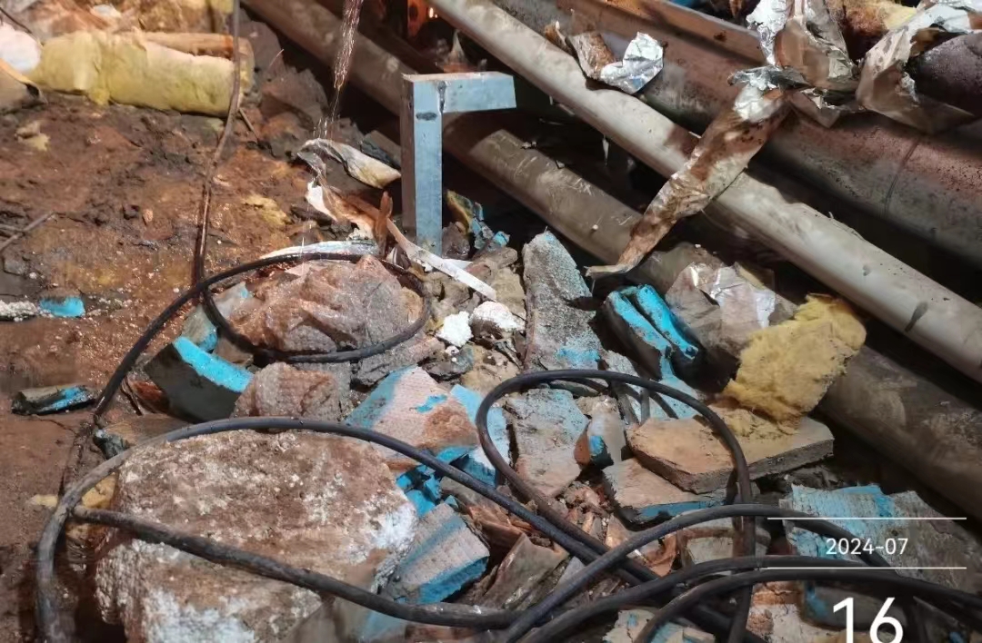 吉财公共大浴池,建于2004年,浴池地沟低、潮湿,管道老化严重,且原模板未拆除,模板腐烂后,铁钉都裸露在外,维修难且有危险。