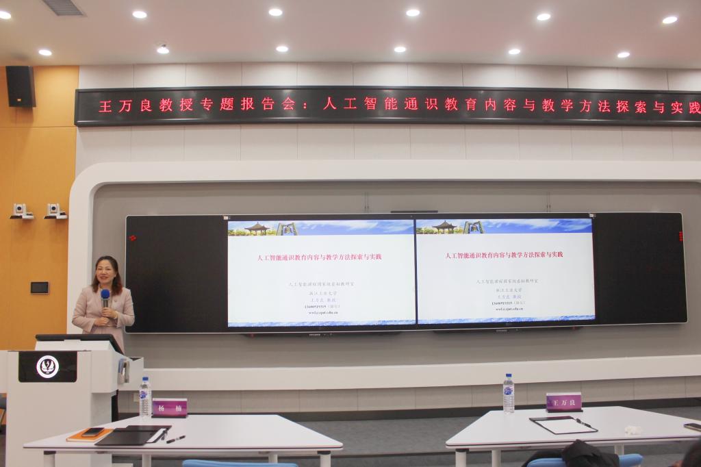 本网讯(教师教学发展中心 供稿)为深入学习贯彻习近平总书记关于教育的重要论述,推进教育数字化转型,探索人工智能赋能教育教学新路径,9月27日下午,kaiyun官网在新经济(数字经济)实验实训中心举办“人工智能通识教育内容与教学方法探索与实践”专题报告会,特邀国家级教学名师奖获得者、浙江工业大学王万良教授作专题报告。校党委副书记、校长童猛,副校长杨楠出席报告会,报告会由杨楠主持。