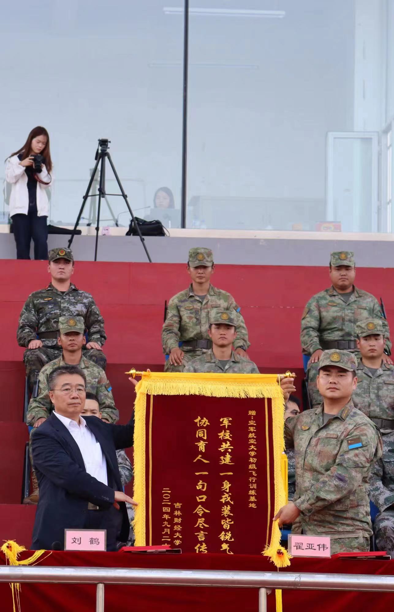 刘鹤代表学校向承训部队赠送锦旗。学校领导和各学院学生工作负责人向受表彰的教官、辅导员以及学生代表颁发了荣誉证书,向优秀寝室颁发锦旗。