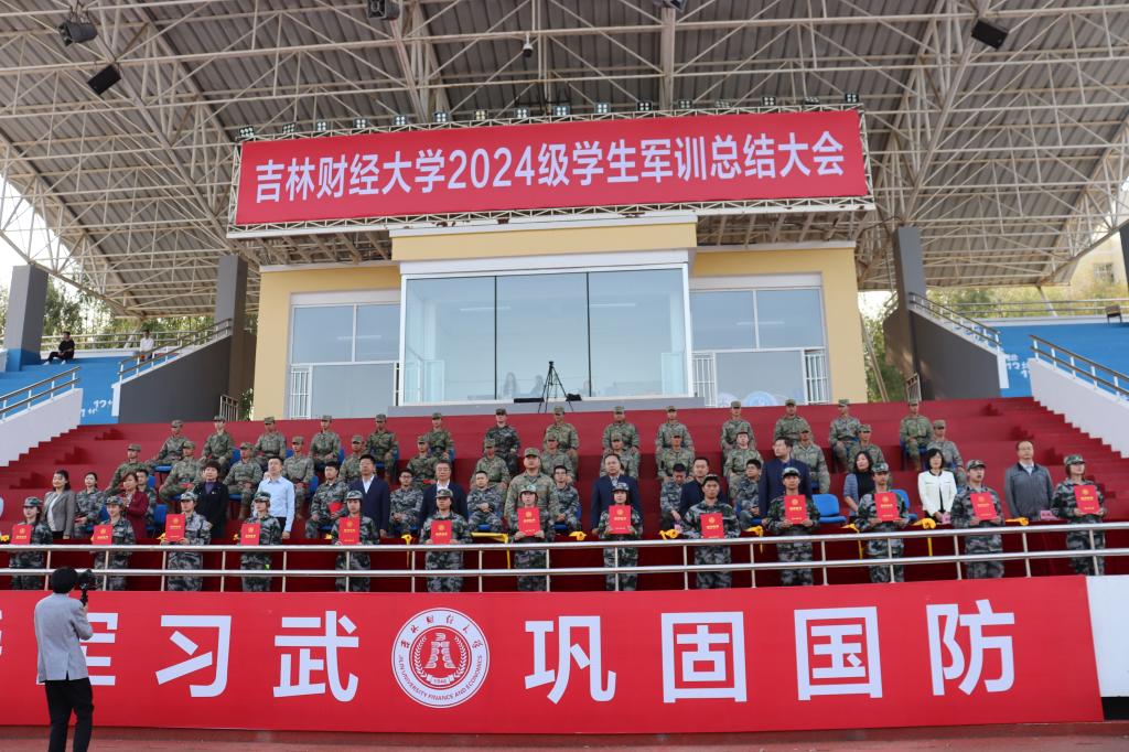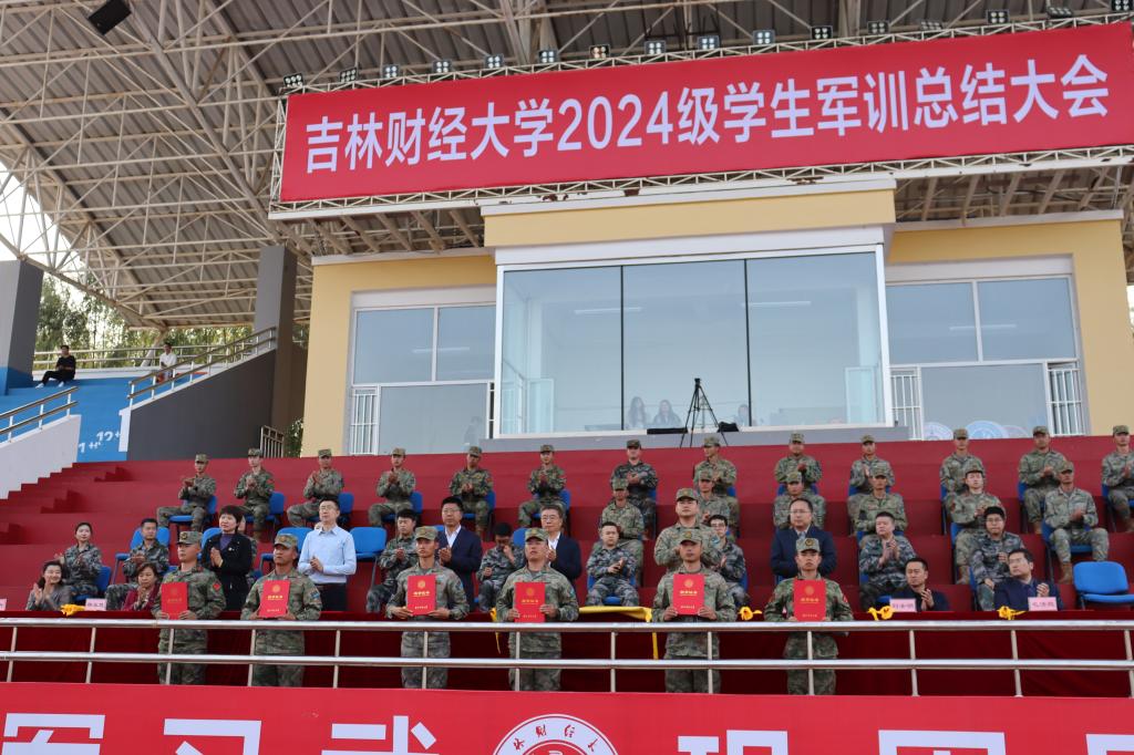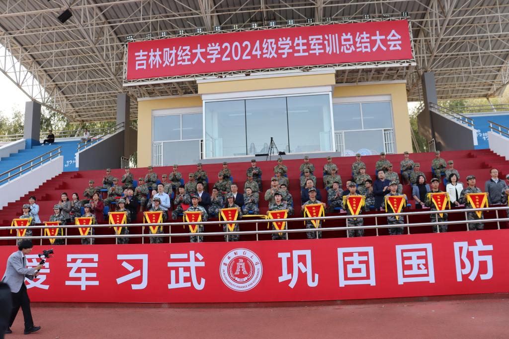 赵彦双作总结讲话,他表示,军训不仅锻炼了体魄,更磨砺了意志,同学们学会了自律,懂得了服从,培养了团队精神。他希望同学们能以军训为起点,保持积极向上的心态,勇敢地去追求自己的梦想。谨记习近平总书记殷殷嘱托,坚定马克思主义信仰、中国特色社会主义信念、中华民族伟大复兴信心,立报国强国大志向、做挺膺担当奋斗者,牢记学校书记、校长的教诲,在学习上,要勤奋刻苦,不断提升自己的专业素养;在生活中,要关爱他人,学会与人合作;在面对困难时,要坚定信心,勇往直前,绽放出新吉财人的风采。