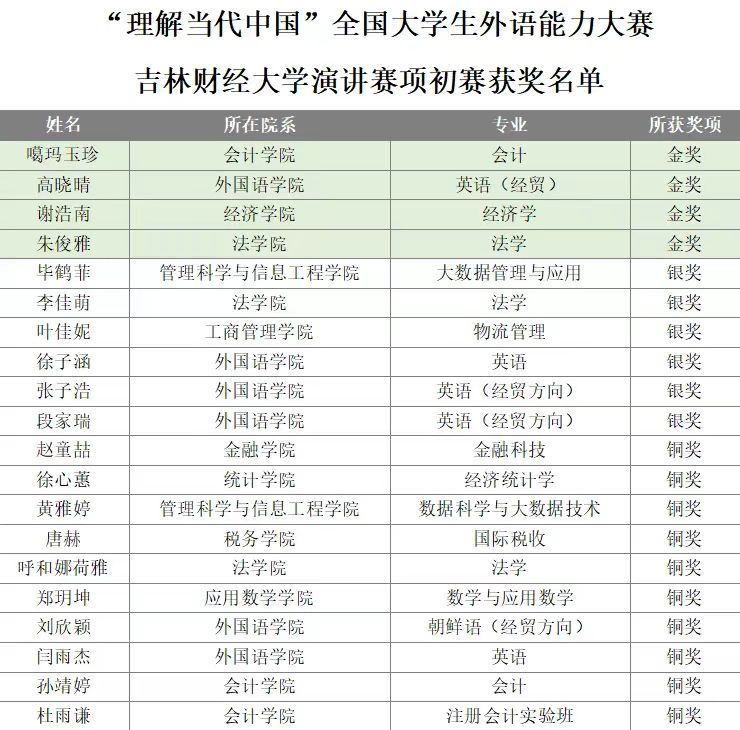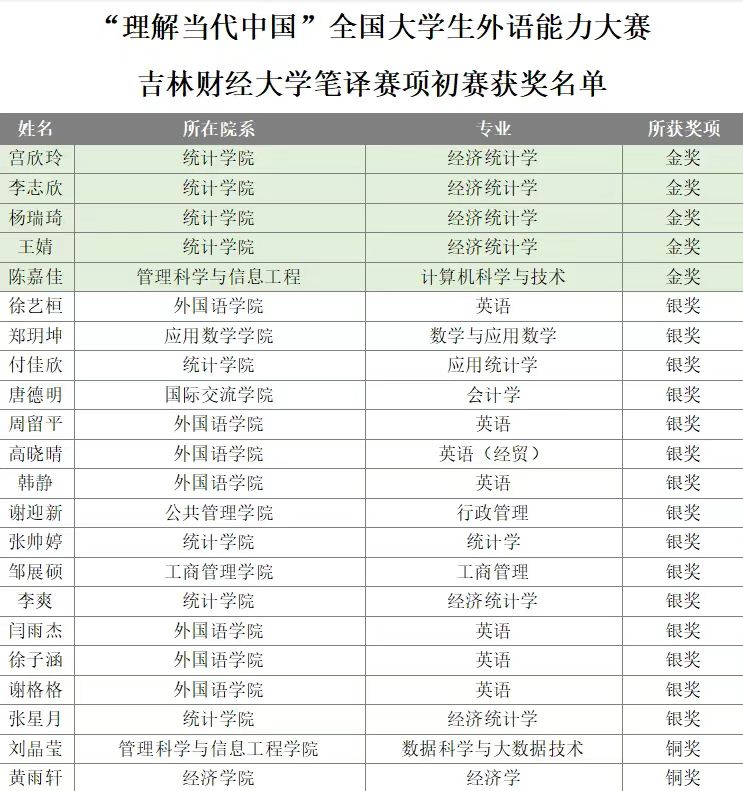 本网讯(公共外语教研部 供稿)2024年9月27日,kaiyun体育网页登录入口公共外语教研部承办的2024年“外研社·国才杯”“理解当代中国”全国大学生外语能力大赛kaiyun体育网页登录入口赛区选拔赛圆满落幕。大赛受到了全校学生的关注与重视,共有800多名同学报名参赛。经过严谨认真的评审,最终评选出7名获金奖同学代表学校参加11月份的吉林省总决赛。在英语演讲赛项中,4人荣获校级金奖,6人银奖 ,10人铜奖;在英语综合能力赛项中,8人荣获校级金奖,25人银奖,39人铜奖;在英语笔译赛项中,5人荣获校级金奖,15人银奖,25人铜奖。所有获奖选手将获得由大赛组委会颁发的电子证书。此次比赛的成功举办,充分展示出kaiyun官网学生的外语能力与水平,也展示了kaiyun官网外语教学所取得的成果,有利于构建 “教・赛・创融合” 的外语育人新模式。(审核人 苗国新)