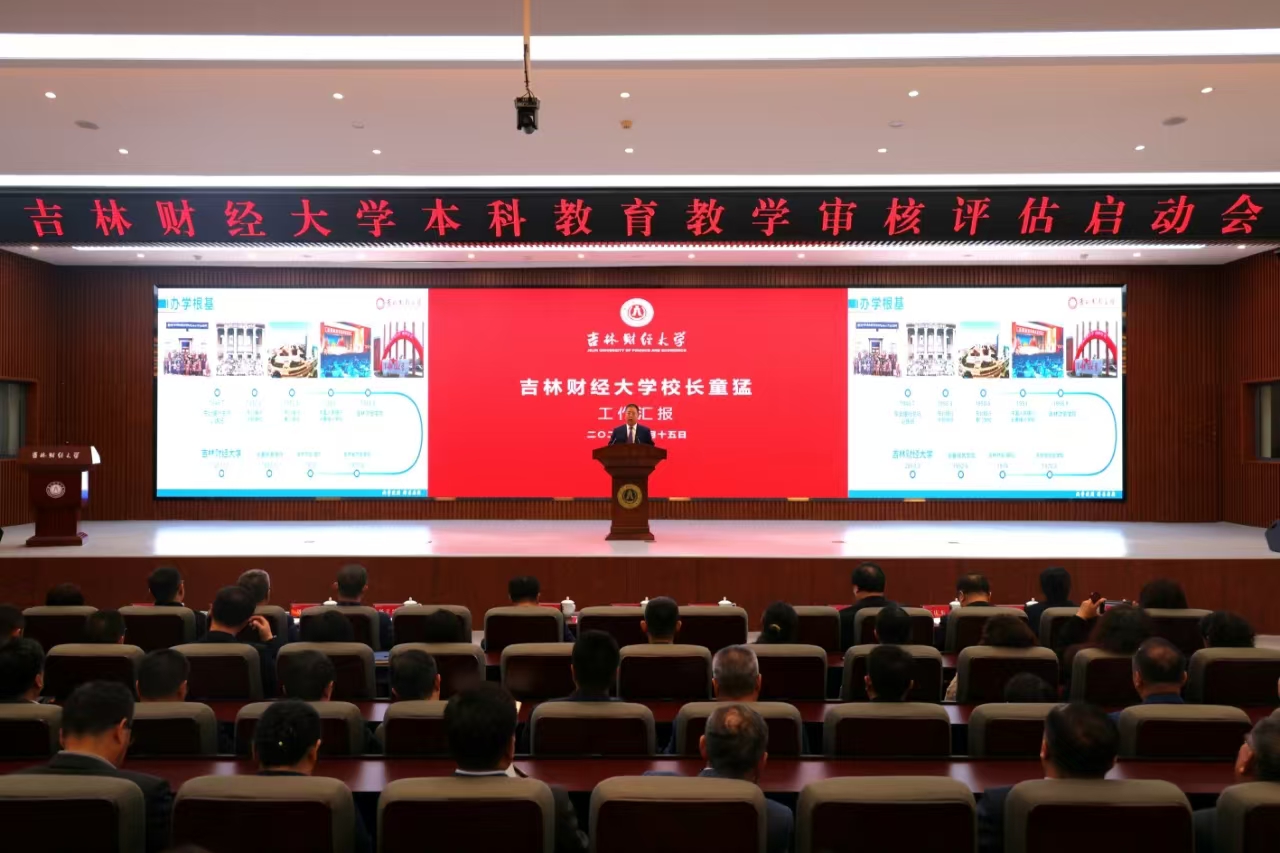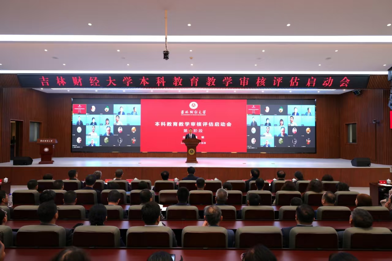 本网讯(教务处 供稿)10月15日,学校在新经济(数字经济)创新创业实训中心召开本科教育教学审核评估启动会。审核评估专家组组长、江西财经大学原党委书记王乔,专家组副组长、中央财经大学校长马海涛,以及全体专家组成员以线上线下相结合的方式出席会议;吉林省教育厅副厅长刘学军、高等教育处一级调研员杨立兴、项目管理人员,以及学校领导班子成员、全体中层干部、教学单位相关人员及师生代表参加会议。