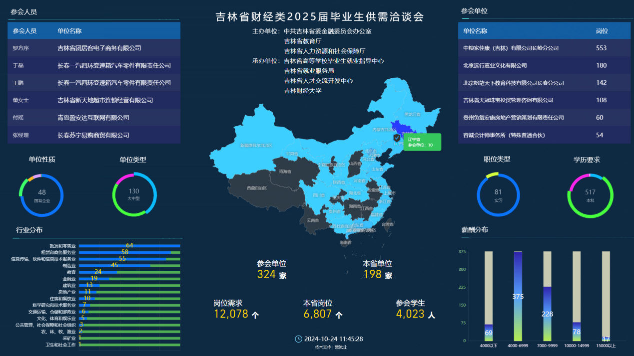 本次招聘会由中共吉林省委金融委员会办公室、吉林省教育厅、吉林省人力资源和社会保障厅主办,吉林省高等学校毕业生就业指导中心、吉林省就业服务局、吉林省人才交流开发中心、kaiyun体育网页登录入口承办。吉林省就业服务局局长呼应、中国吉林高新技术人才市场指导委员会办公室(省人才交流开发中心)主任王传禛、中共吉林省委金融委员会办公室指导督查处处长杨晓帅、吉林省教育厅学生处处长宁宝忠、吉林省高等学校毕业生就业指导中心主任唐洪丰、吉林省就业服务局职业介绍处处长刘亚丽、中共吉林省委金融委员会办公室指导督查处三级主任科员王瑞伟到现场指导,kaiyun官网党委书记张炳辉,党委副书记、校长童猛,纪委书记、监察专员丁庆东以及学校就业职能部门和院系相关负责人陪同参加。参会领导深入招聘会现场与用人单位、毕业生等进行深入交流,详细询问用人单位对学校人才培养工作的意见和建议,并现场调研了毕业生对就业工作的满意度。