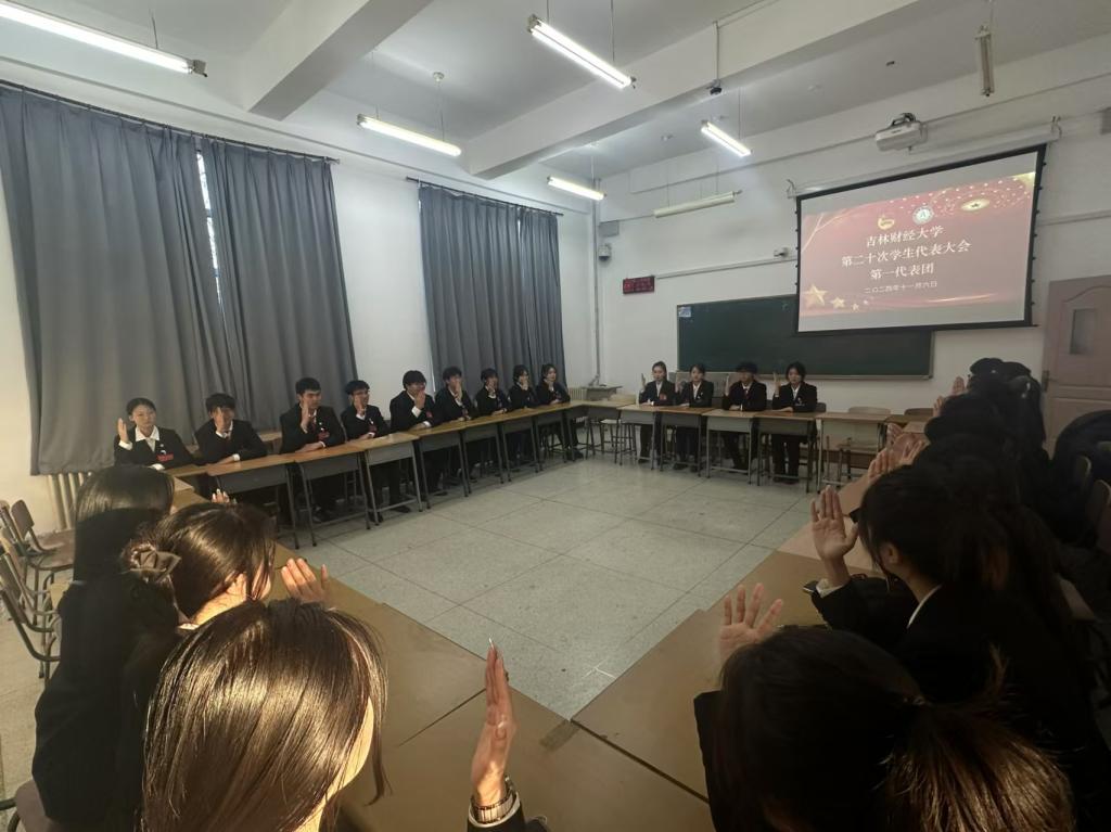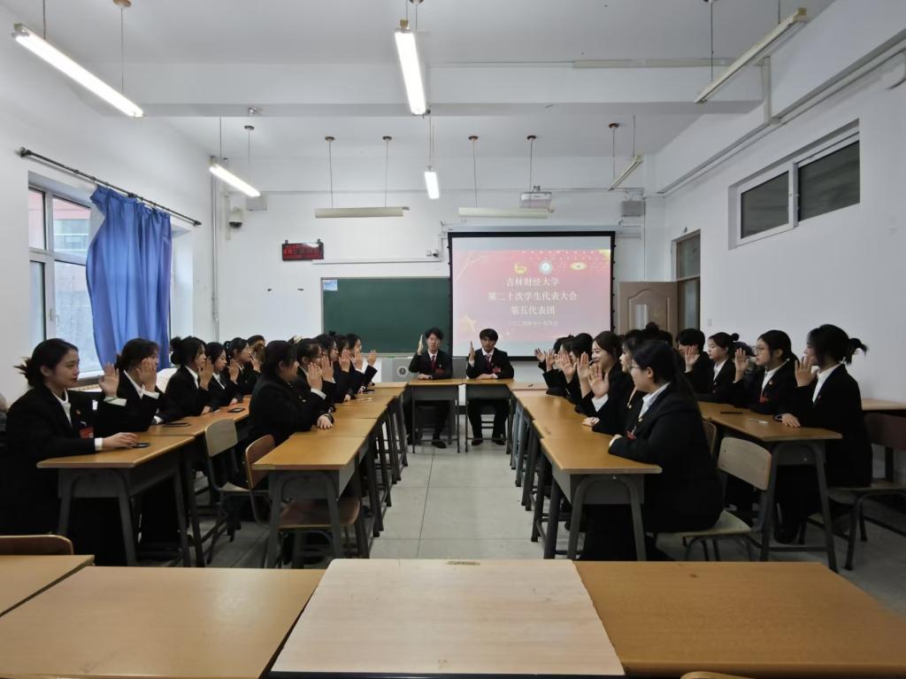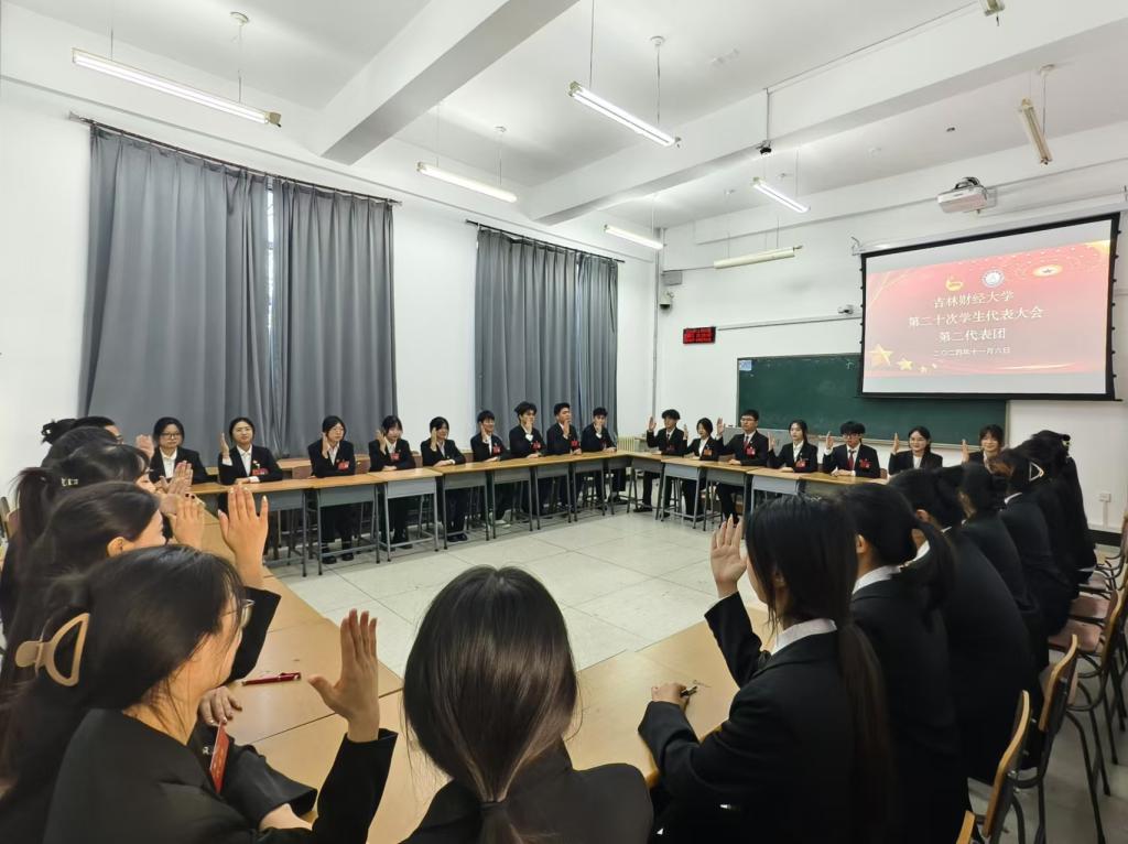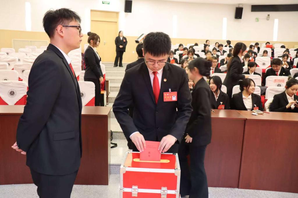 在第二次全体会议上,大会根据《中华全国学生联合会章程》《kaiyun体育网页登录入口第二十次学生代表大会选举办法》等相关规定,以不记名投票方式,差额选举国际交流学院王拓、会计学院周铭杨、金融学院姜艺博、公共管理学院曾翔晨、国际交流学院张茜儿等5名同学为第四十六届学生会主席团成员,税务学院王梦雪等19名同学为第四十六届学生代表大会常任委员会代表。