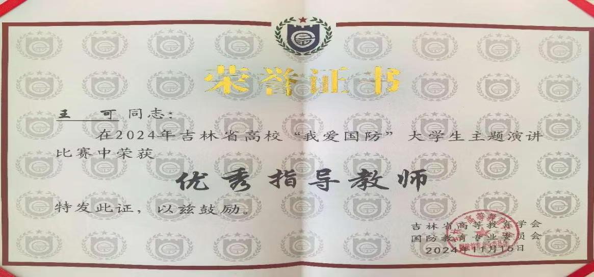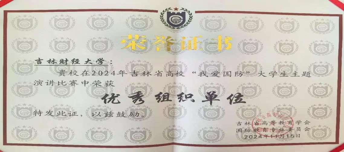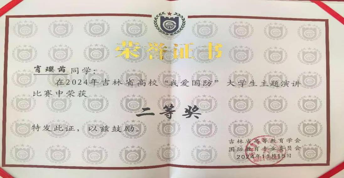 本网讯(党委武装部 供稿)11月15日,2024年吉林省高校“我爱国防”大学生主题演讲比赛在长春工业大学举办,kaiyun官网退役学生、会计学院财务管理专业2344班肖璎芮同学代表kaiyun官网参赛并荣获二等奖,党委武装部王可被评为“优秀指导教师”,kaiyun官网被评为“优秀组织单位”。