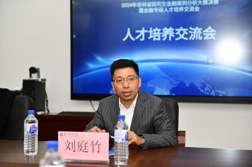 全国金融专业学位研究生教育指导委员会办公室主任刘庭竹介绍了全国金融硕士专业学位研究生的招生情况及培养要求,对吉林省研究生金融案例分析大赛对高级应用型人才培养方式的有益探索给予了肯定。刘庭竹指出,本次比赛不仅能够提升同学们的专业素养和实践能力,为金融行业的发展贡献智慧和力量,还能使各培养单位充分利用这一平台加强合作交流,共同推动金融理论与实践的深度融合与良性互动。