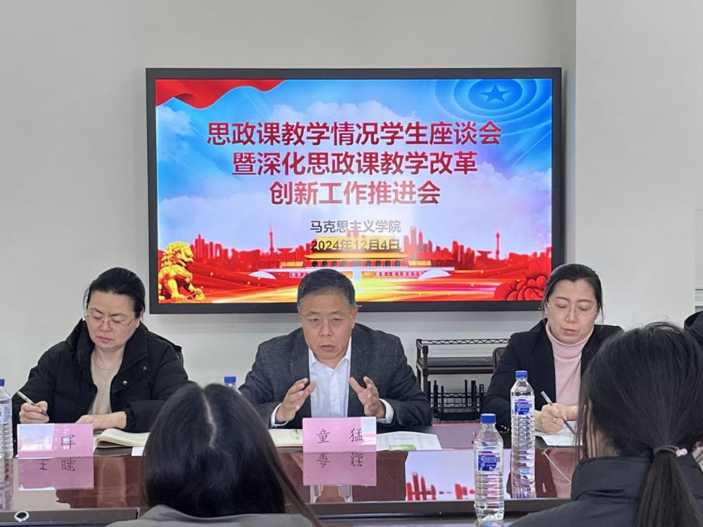 本网讯(马克思主义学院 供稿)为深入贯彻落实习近平总书记对学校思政课建设作出的重要指示精神和新时代学校思政课建设推进会精神,提升思政课教育教学实效,12月4,学校党委副书记、校长童猛在马克思主义学院组织召开思政课教学情况学生座谈会暨深化思政课教学改革创新工作推进会。