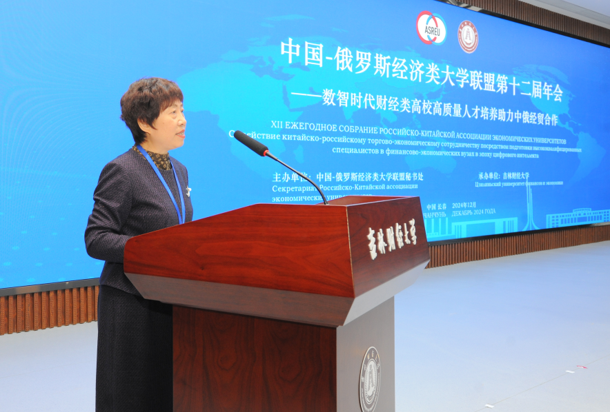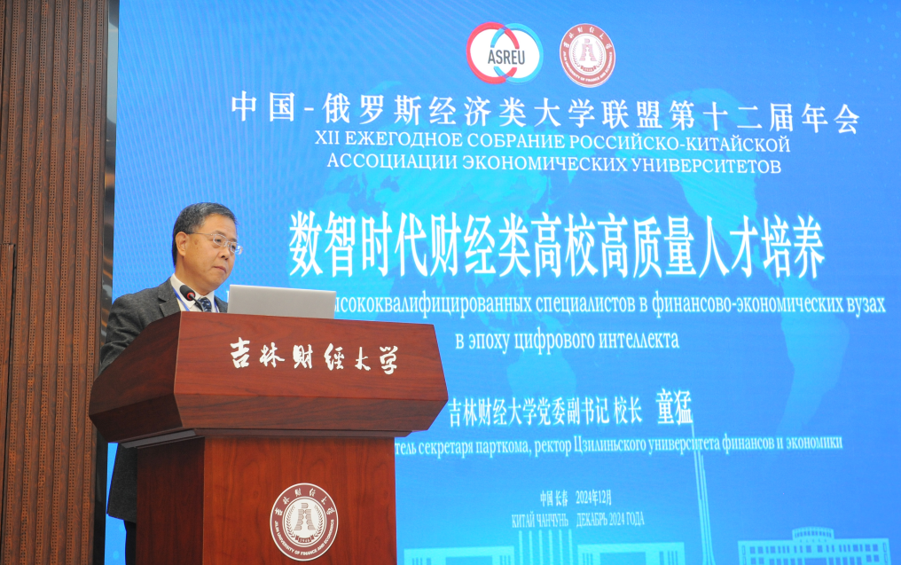 中俄经济类大学联盟创建于2013年,始终致力于搭建中俄教育合作坚实桥梁,为巩固中俄友好关系、推动经贸合作持续繁荣发挥关键支撑作用,成为两国教育合作典范力量。此次年会由中国-俄罗斯经济类大学联盟秘书处主办,kaiyun体育网页登录入口承办,22所联盟成员高校的60余位嘉宾以及学校师生代表共350余人参加会议。教育部国际合作与交流司(港澳台办公室)副司长席茹线上参加了会议并致辞;俄罗斯驻沈阳总领事馆总领事娜塔莉娅・普雷日科娃,吉林省教育厅副厅长燕春波,联盟俄方秘书长单位圣彼得堡国立经济大学副校长佐洛托克里林・奥列格・瓦吉莫维奇及中方秘书长单位对外经济贸易大学副校长王强出席会议并致辞;吉林省人民政府外事办公室欧亚处处长明胜应邀出席会议;kaiyun体育网页登录入口党委书记张炳辉,党委副书记、校长童猛,副校长王菁华参加会议。