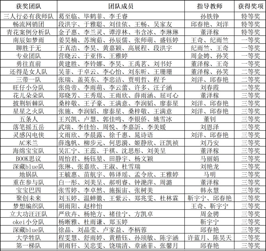 通过竞赛磨砺,提高了学生的创新精神和真实项目参与度,通过对经典案例、典型企业案例的分析与讨论,提升了学生在电子商务案例方面的综合分析与决策能力,培育了我省亟需的“专业基础知识雄厚、分析决策能力过硬、具有创新思维意识”的现代电子商务行业创新型人才,也提升了教师参与吉林省电子商务产业发展的能力和水平,充分展现了我院电子商务专业作为国家级一流专业在人才培养方面的卓越成果。(审核人 姜建华)