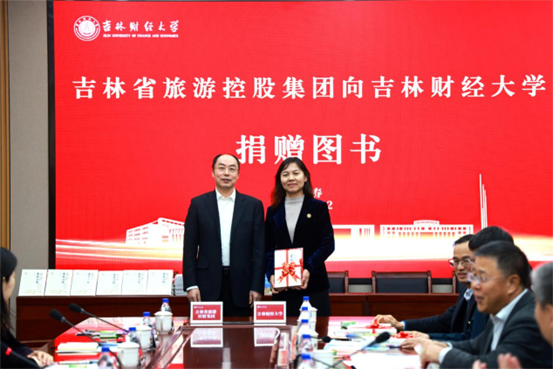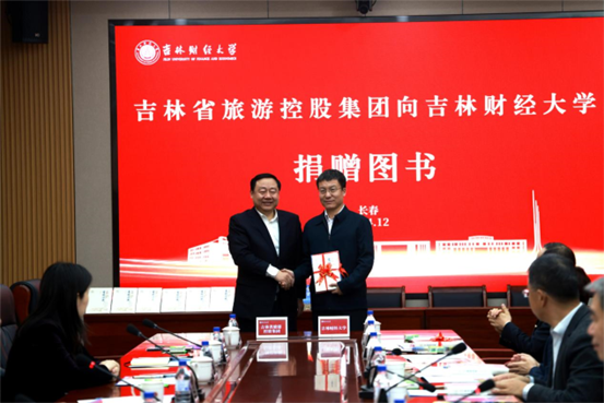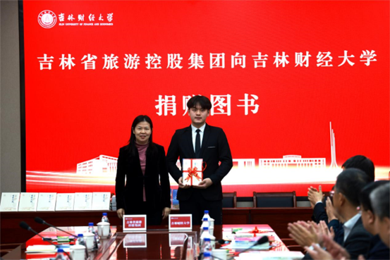 签约仪式上,孟庆凯、刘超、李昌军、赵丹辉分别向学校大学图书馆、研究生学院、工商管理学院以及学生代表捐赠了《简明吉林历史》《守望——吉林边疆人文地理纪事》图书。
