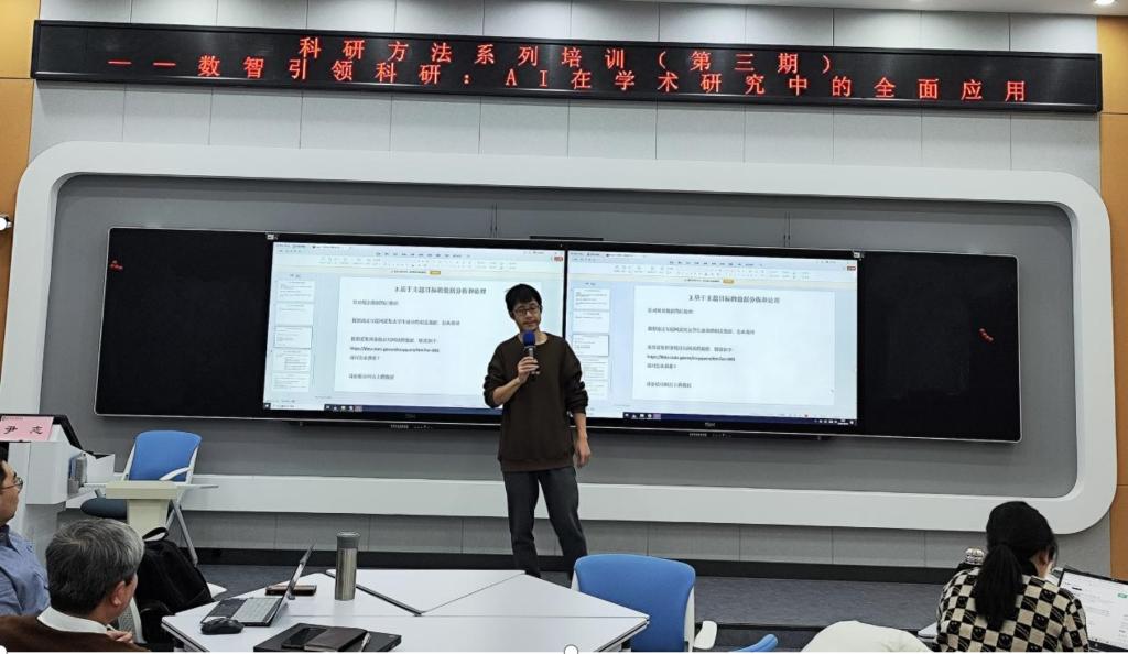 本期培训由科研处与教师教学发展中心联合举办,以“数智引领科研:AI在学术研究中的全面应用”为主题,邀请浙江大学物理学博士、宁波工程学院数据工程中心主任、浙江云朵网科技股份有限公司首席数据科学家尹志从“AI大模型工作基本原理及在论文撰写、调研设计及课题申报等科研工作中的应用”等方面进行专题授课。