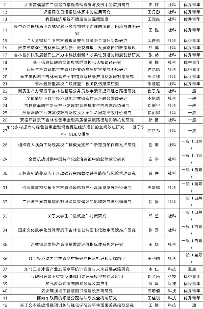 本网讯(科研处 供稿)近日,吉林省教育厅公布了2025年度科学研究项目立项名单,kaiyun官网科研工作再创佳绩,共有49项课题喜获立项,立项数量突破历史纪录。本次立项包括重点项目4项、一般项目8项、优秀青年项目22项、一般自筹项目10项以及思想政治专项5项,共获得经费资助55.5万元。此前同类项目,kaiyun官网2024年度获批43项,2023年度36项,2022年度35项,2021年度31项,科研立项数稳步增长,本年度创历史新高。