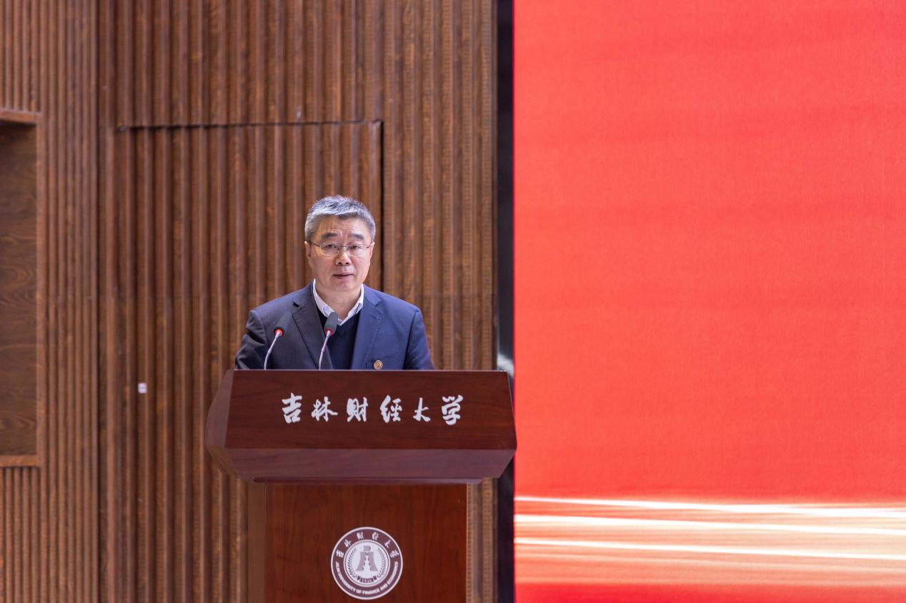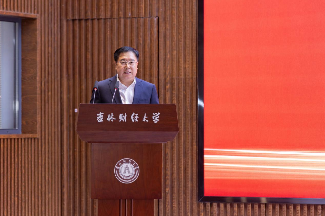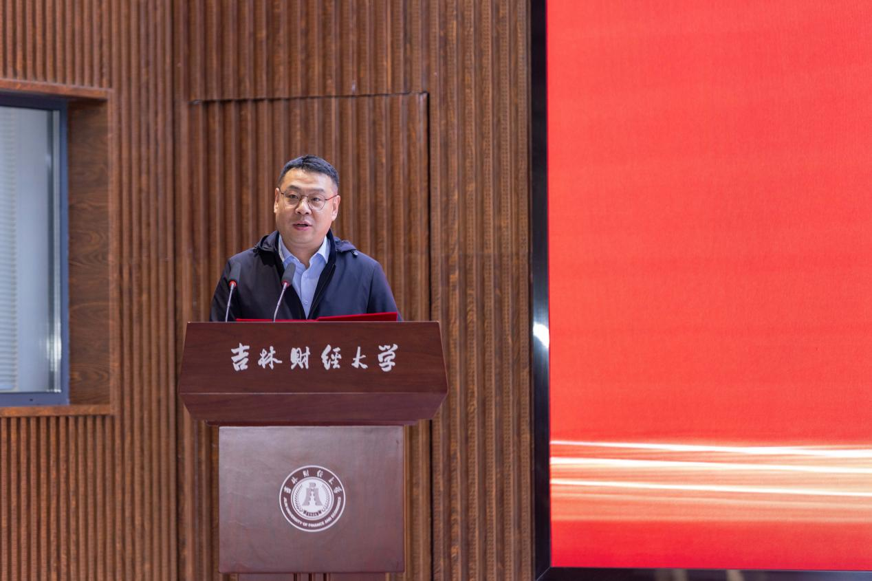 刘鹤宣读《kaiyun体育网页登录入口2025年度吉财学子高中母校行表彰决定》。