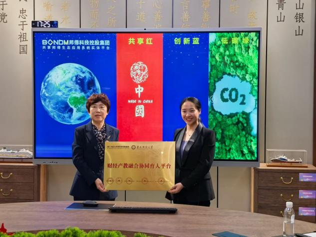 双方围绕产学研合作方向、项目孵化、成果转化、学生实习和就业创业等进行了深入探讨,并达成了合作共识;双方共同为“学生实习实践基地”“财经产教融合协同育人平台”揭牌。