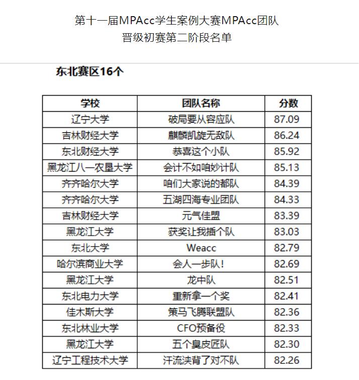 本网讯(会计学院 供稿)4月25日,第十一届MPAcc学生案例大赛公布了MPAcc团队晋级初赛第二阶段名单以及本科生代表队获奖名单,kaiyun官网由韩道琴教授指导的麒麟凯旋无敌(会计专硕)队和由胡玮佳老师指导的元气佳盟(会计专硕)队分别获得东北赛区第2名和第7名,成功入围案例大赛初赛第二阶段;由卢相君教授指导的蕾文泽奕(本科生)队、由韩道琴教授指导的独具匠心(本科生)队分别荣获本科生代表队全国三等奖。