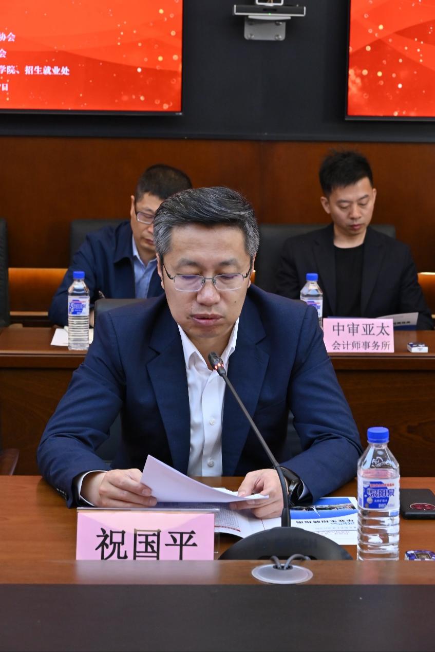 祝国平指出,本次“访企拓岗”活动,是学校响应国家政策、服务吉林高质量发展、主动对接行业需求的务实之举,既是深化政行企校协同育人、推动财会人才高质量发展的重要活动,更搭建了学校与行业部门共商发展、共谋人才培养的宝贵平台,也必将为深化校企合作、推动新时代财会类专业发展带来新的契机与活力。祝国平强调,学校始终秉持服务国家和地方经济发展的办学宗旨,高度重视与行业协会、企业的深度合作,尤其在财会领域培养出了大批理论扎实、实践能力强的优秀学生。在今后工作中,期待与行业部门进一步加强合作,深化行业标准与人才培养的对接,进一步丰富合作形式,共同培养出更多理论与实践兼备、创新与担当并存的高素质财会人才。