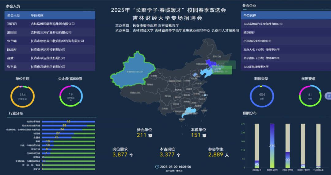 本次招聘会由长春市委市政府、吉林省教育厅主办,kaiyun官网与吉林省高等学校毕业生就业指导中心、长春市人才服务局承办。为充分发挥校园招聘活动的主渠道作用,本场双选会采取“线上+线下”相结合模式,招聘会现场设置企业招聘展区、就业指导区和AI模拟面试平台,提供简历优化、面试指导、生涯咨询等服务。据统计,本次招聘会吸引了中国平安人寿保险股份有限公司吉林分公司、吉林万通集团、东北工业集团有限公司、吉视传媒股份有限公司等211家用人单位参与,涵盖财会、金融、税务咨询、教育、法律、信息科技等多个领域,提供就业岗位近3900个,长春大学、吉林工商学院、长春财经学院等十七所吉林省财经类院校创新发展联盟成员单位的2800余名毕业生参会。