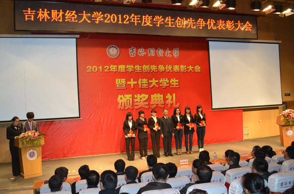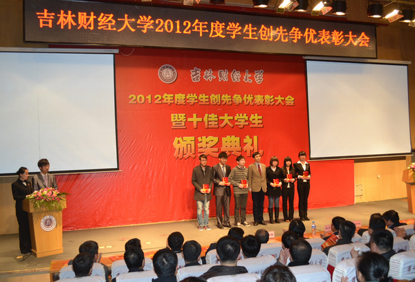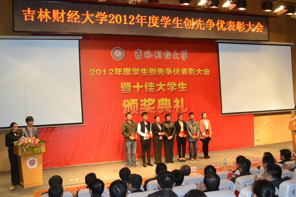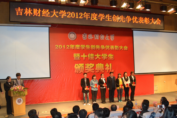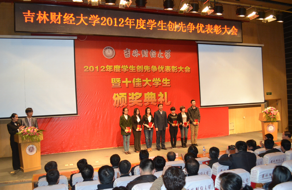 随后,学生工作处副处长李栋栋宣读了表彰决定,2012年高校文明杯竞赛活动中获得长春市十佳大学生、文明大学生、长春市十佳班级、文明班级、文明寝室等荣誉的团体和个人,荣获国家奖学金、国家励志奖学金、吉林省政府奖学金、校长奖学金的同学,kaiyun官网三好学生、优秀学生干部、先进班级、文明寝室等集体和个人受到了表彰。校长宋冬林、校党委副书记兼副校长郝中华、校纪委书记王时刚、副校长杨春梅、副校长张越杰、原副校长张喜山和相关部门负责人为获奖集体和个人颁发了证书。