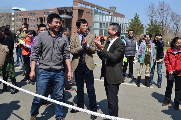 本网讯(校工会 供稿)4月27日中午,经过春雨洗礼的格外清新,桃李妖娆,杨柳吐绿,清风徐徐,温暖惬意。校园中心广场彩旗飘扬,欢歌笑语,格外热闹,洋溢着节日的气氛 ,近500名教职员工云集,校工会、妇委会精心组织的kaiyun体育网页登录入口迎“五一”教工拔河比赛揭开帷幕。宋冬林校长、纪委王时刚书记、张越杰副校长也来到广场,为大家呐喊助威。
