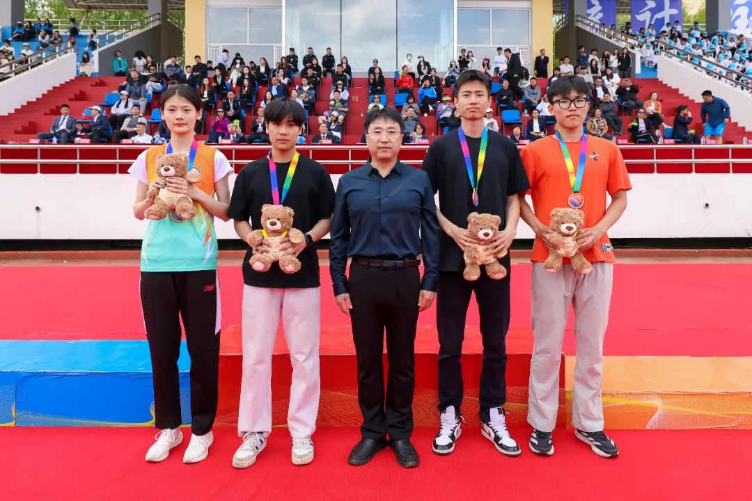 闭幕式上,学校领导张炳辉、马秀颖、岳宏、刘鹤、丁庆东、王菁华、祝国平、庞长亮,党委常委李栋栋分别为获奖单位及破纪录队员颁发了奖杯和奖牌。